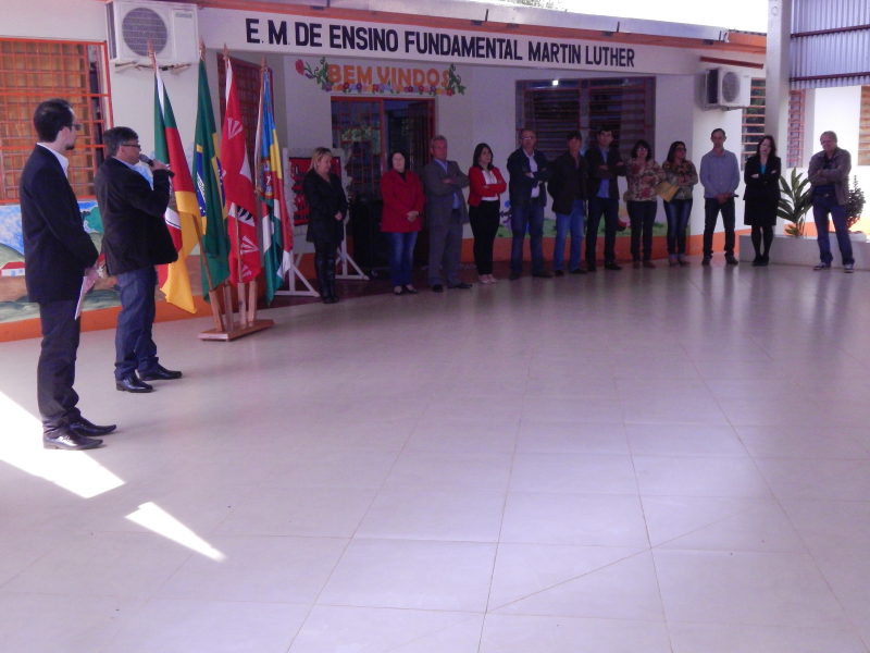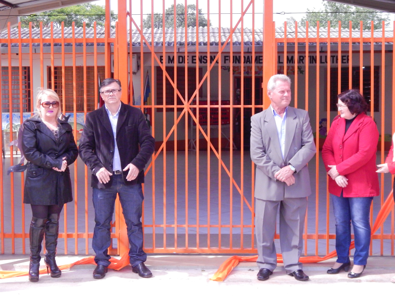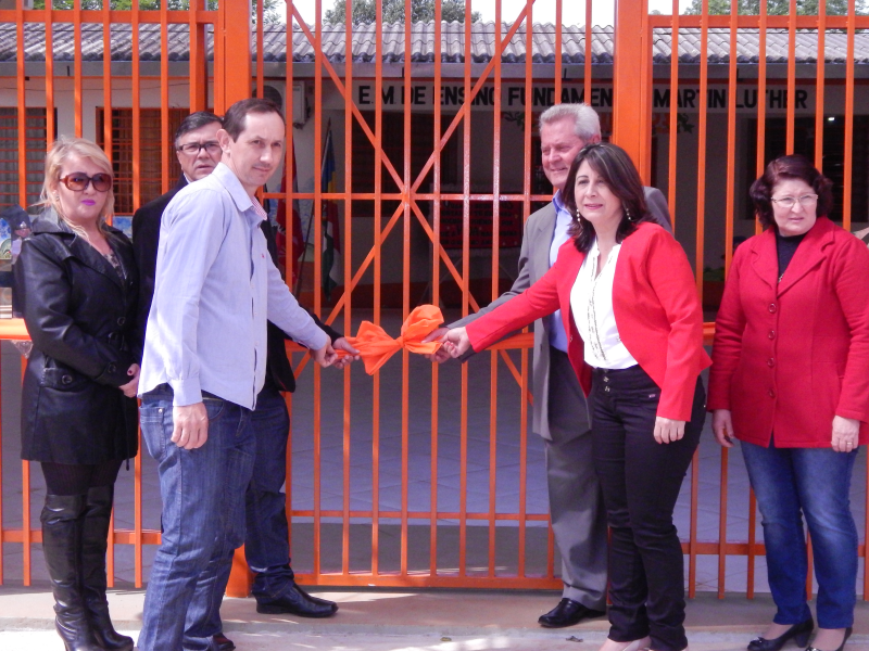 Nesse domingo (18) foi inaugurado o cercamento e o Haal de entrada da Escola Municipal Martin Luther da Vila Dona Otília, onde essas eram antigas reivindicações da comunidade escolar, tanto pela segurança dos alunos quanto pela maior mobilidade e espaço interno em dias de chuva.No ato inaugural, usaram a palavra a diretora do educandário, professora Edenir da Silva Ferreira, que agradeceu o empenho e o apoio da administração municipal, E deSecretária de Educação Cultura e Turísmo Marilene Fátima Cruz Boht, que não mede esforços para auxiliar as escolas municipais em todos as suas prioridades, na participação do vice prefeito Sr. Lino Berwaldt Wohlfahrt,esse, salientou a antiga reivindicação que no momento estava sendo conquistada, e que a segurança e o conforto das crianças e adolescentes que freqüentam o educandário é uma das prioridades da atual gestão, já o prefeito Sadi Wust Ribas, Relatou de que a participação do CPM, Círculo de Pais e Mestres, é essencial para o maior desenvolvimento de uma escola e que nessa inauguração o CPM tem grande participação, salientando também de que apesar da crise financeira que assola o País, foi dado prioridade para atender essa demanda.