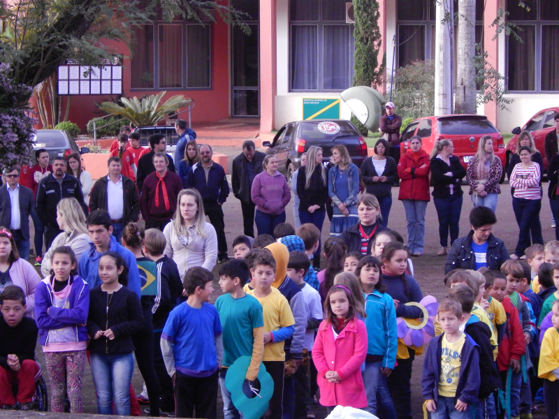 Nessa quinta feira 1º de setembro junto a Praça Tiradentes, em Roque Gonzales, reuniram-se alunos e professores das redes municipal e estadual de ensino juntamente com funcionários da prefeitura municipal, STR, Emater e publico em geral para dar início as comemorações da semana da Pátria. Dentre as apresentações tivemos alunos da Escola Estadual Érico Veríssimo e Escola Municipal Santo Antônio de Pádua, enaltecendo nossa Pátria e indagando sobre os novos rumos que Ela ira tomar com toda essa turbulência financeira e política que o Brasil atravessa. Os atos foram coordenados pelas professoras Simoni Frolisch e Edite Mallmann.
