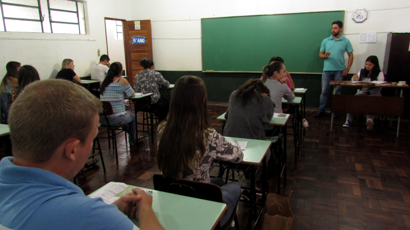 Mesmo com a chuva que caiu durante todo o final de semana, os mais de 90 inscritos não deixaram de ir até a Escola Municipal Santo Antônio de Pádua, no Bairro Santo Antônio, para realizar a Prova Escrita e concorrer a uma das 13 funções ofertadas no Edital de Seleção Pública. Dentre os conteúdos programáticos do processo seletivo estiveram questões sobre língua portuguesa e conhecimentos específicos sobre cada área com funções ofertadas.