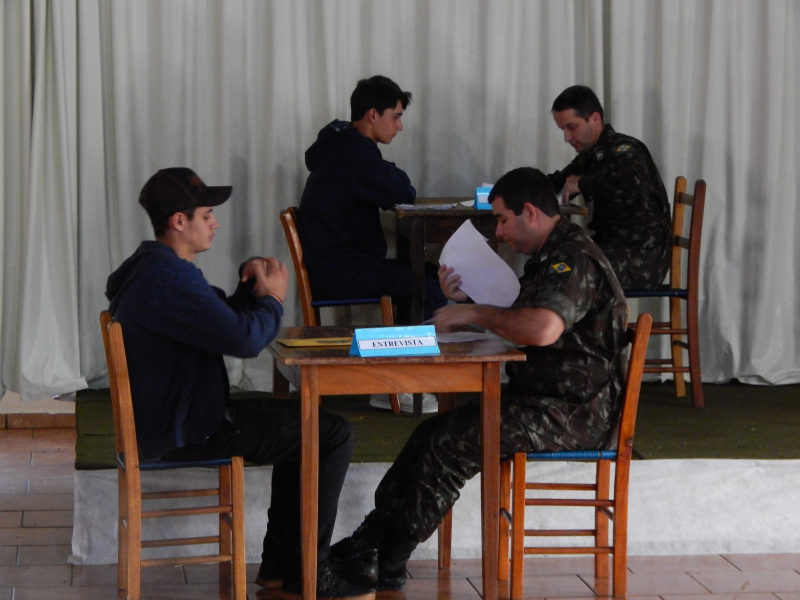 Nessa primeira etapa é realizado exames médicos e entrevistas com os recrutas, efetuados pelo 4º RCB- Dragões do Rio grande de São Luiz Gonzaga.