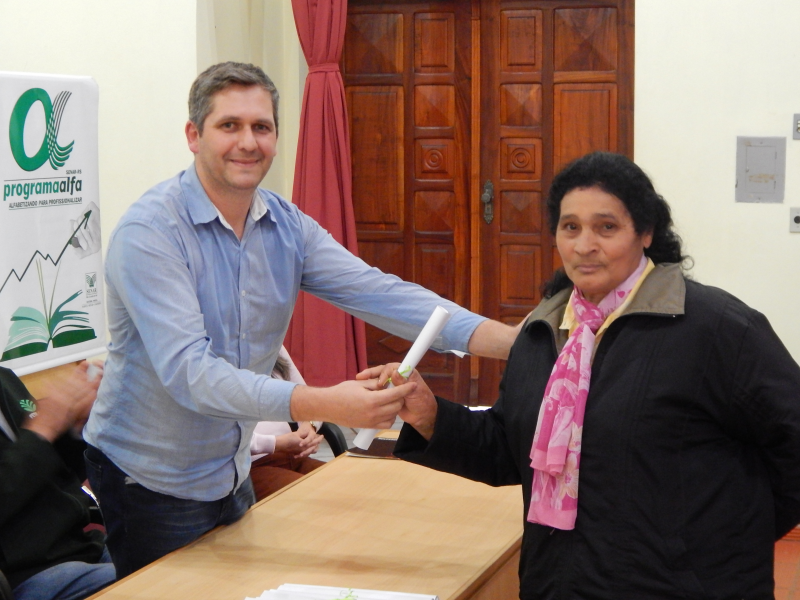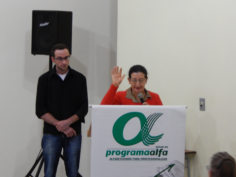 Foi realizada, na tarde desta quarta-feira, 03 de outubro, na Casa de Cultura Nelson Hoffmann, a solenidade de Formatura e encerramento do Programa ALFA - Alfabetizando para Profissionalizar do SENAR/RS.