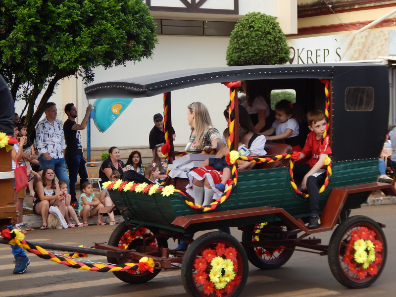 Após a solenidade de abertura acompanharam a carreata da alegria, que com muita animação desfilou na praça da Matriz, e desloucou-se até o Parque de Exposições.
