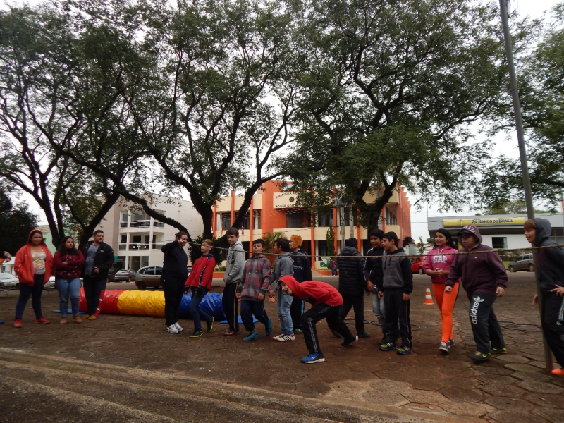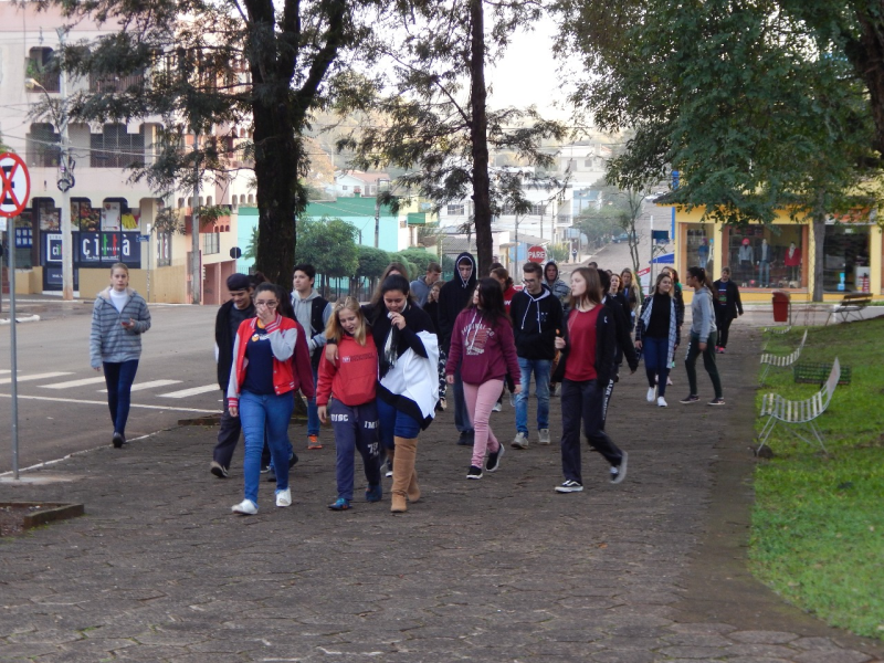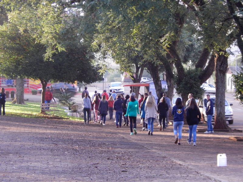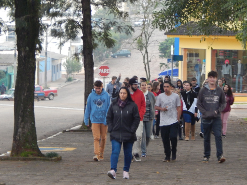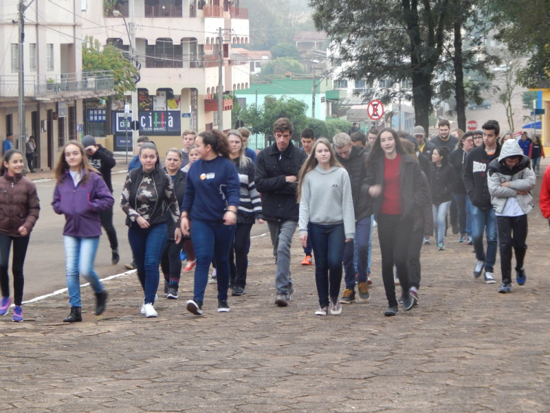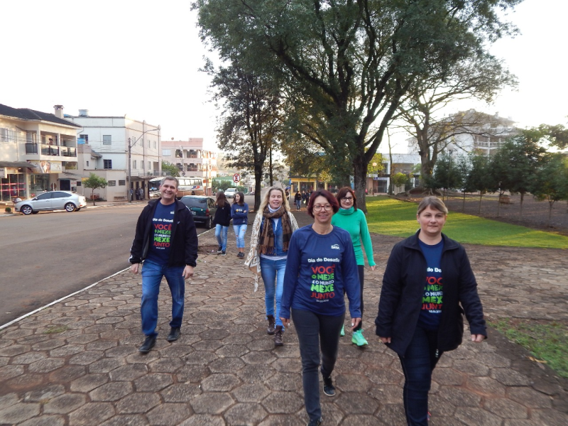 As atividades do Dia do Desafio tiveram continuidade na Praça Tiradentes, onde foi realizada uma caminha em torno da Praça contando com a participação dos alunos da Escola Erico Veríssimo, comunidade e funcionários da prefeitura.