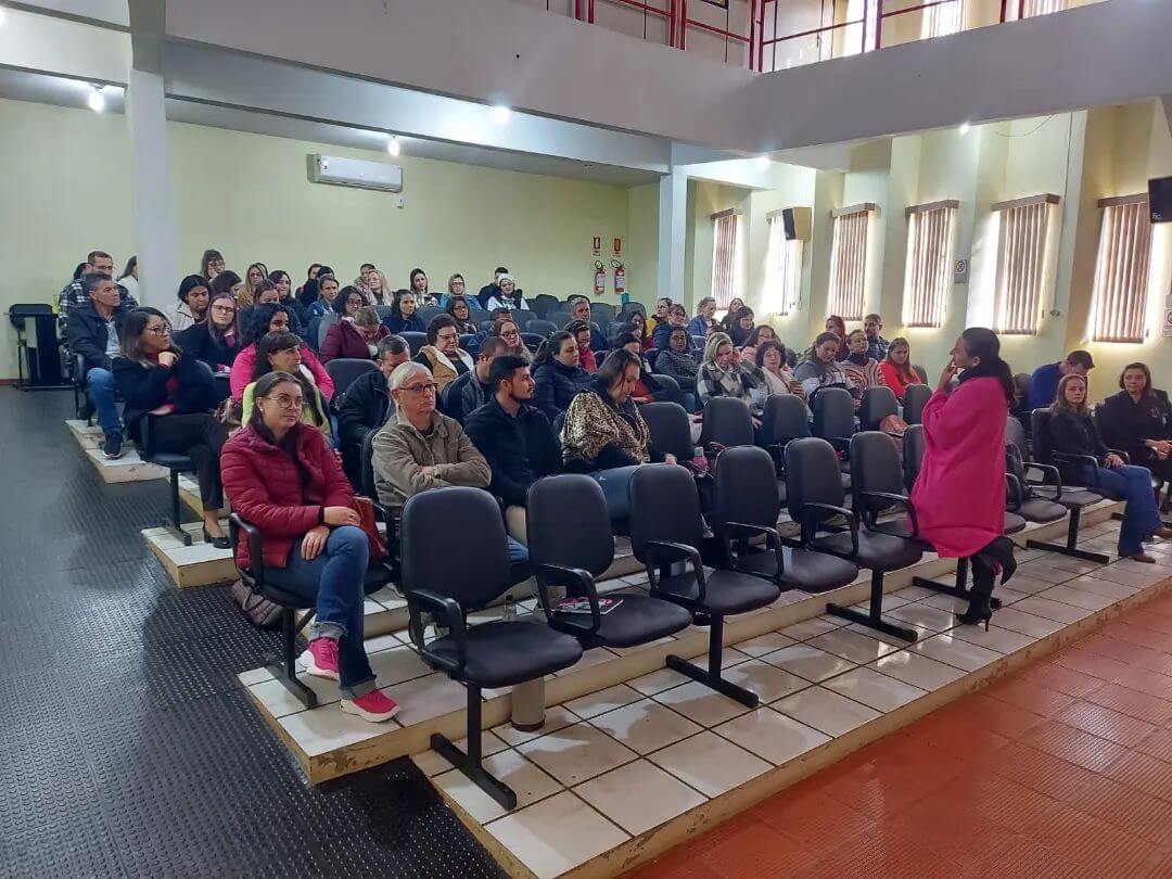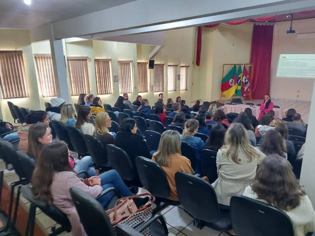 📆Nesta terça-feira (19), a Secretaria Municipal de Educação com sua equipe Pedagógica organizaram mais uma formação continuada para os Professores Municipais, no Auditório da Casa de Cultura Nelson Hoffmann.