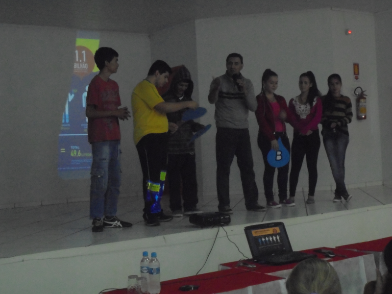 A palestra foi de responsabilidade do Observatório Bioastronômico COSMOS, de Santa Maria os quais utilizam de recursos tecnológicos de som e imagem, artes cênicas e material pedagógico, para abordar assuntos relacionados ao surgimento e evolução da Biodiversidade na Terra e a importância da água neste contexto;ciclo da água;aquífero Guarani, uso racional,água e doenças -Dengue...