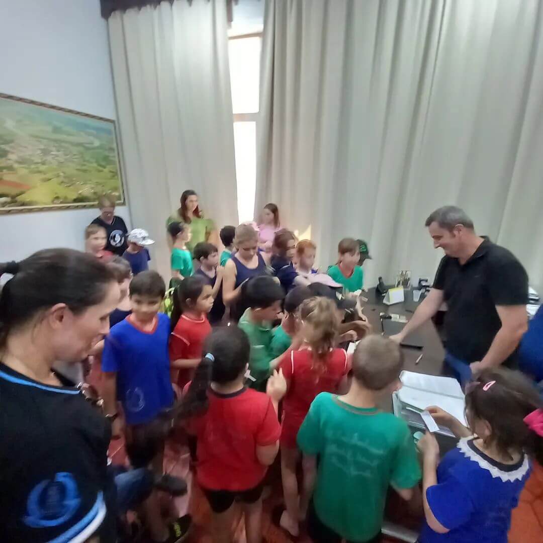 📆 Na tarde desta terça-feira (11), o Prefeito Municipal Fernando Mattes Machry acompanhado do Vice-Prefeito José Alfredo Kupske receberam os alunos e professoras da Escola Estadual de Ensino Fundamental Alfredo Szinvelski do Distrito do Rincão Vermelho.