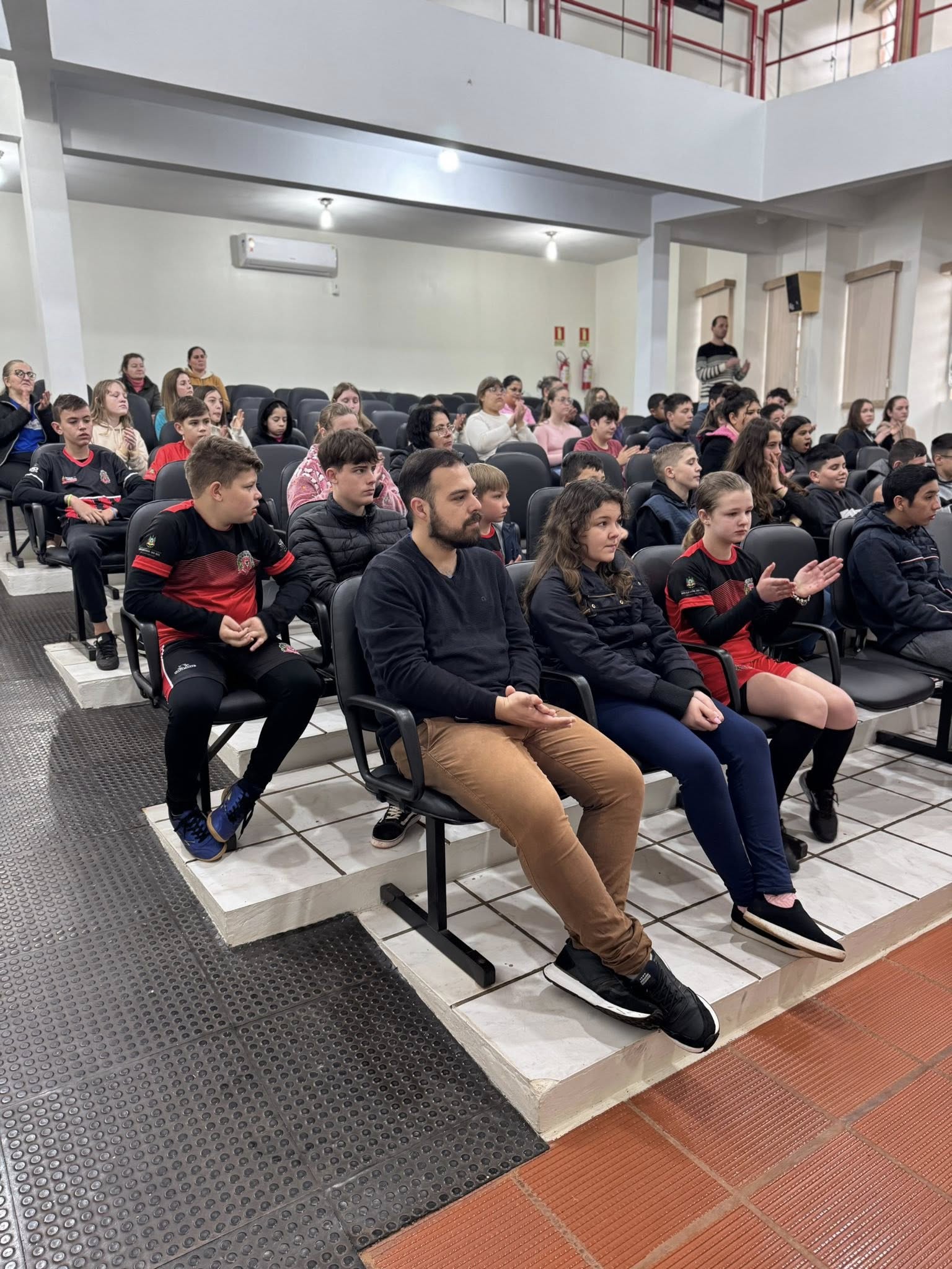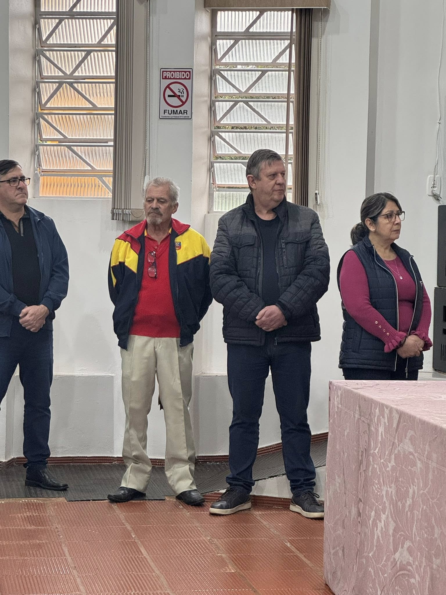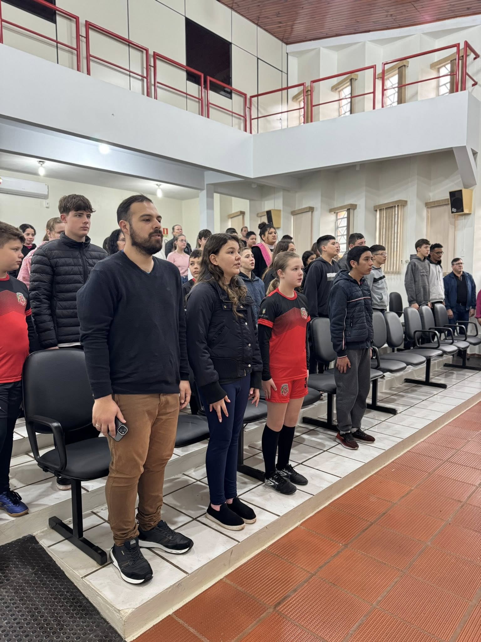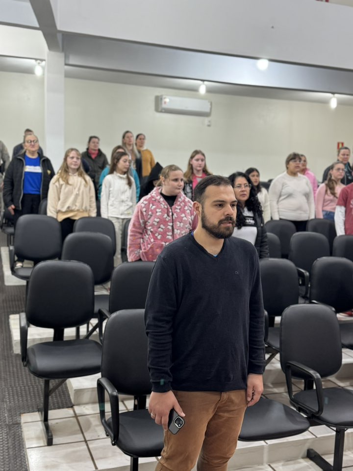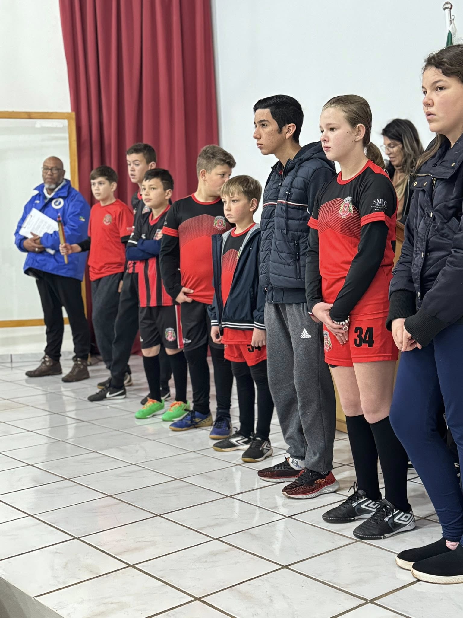 A solenidade aconteceu na Casa de Cultura Nelson Hoffmann e contou com a presença de alunos da Escolinha de Futsal e da Escola Santo Antônio, que prestigiaram o momento cívico.