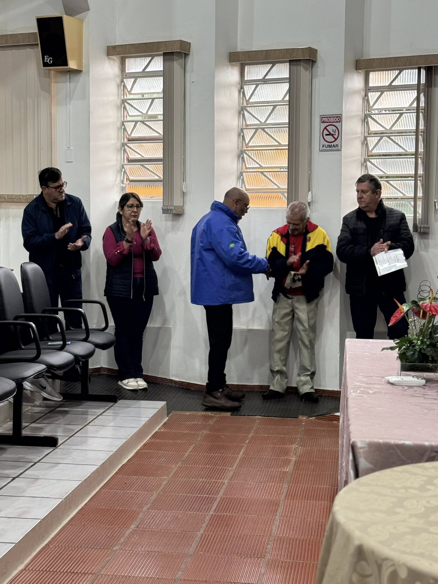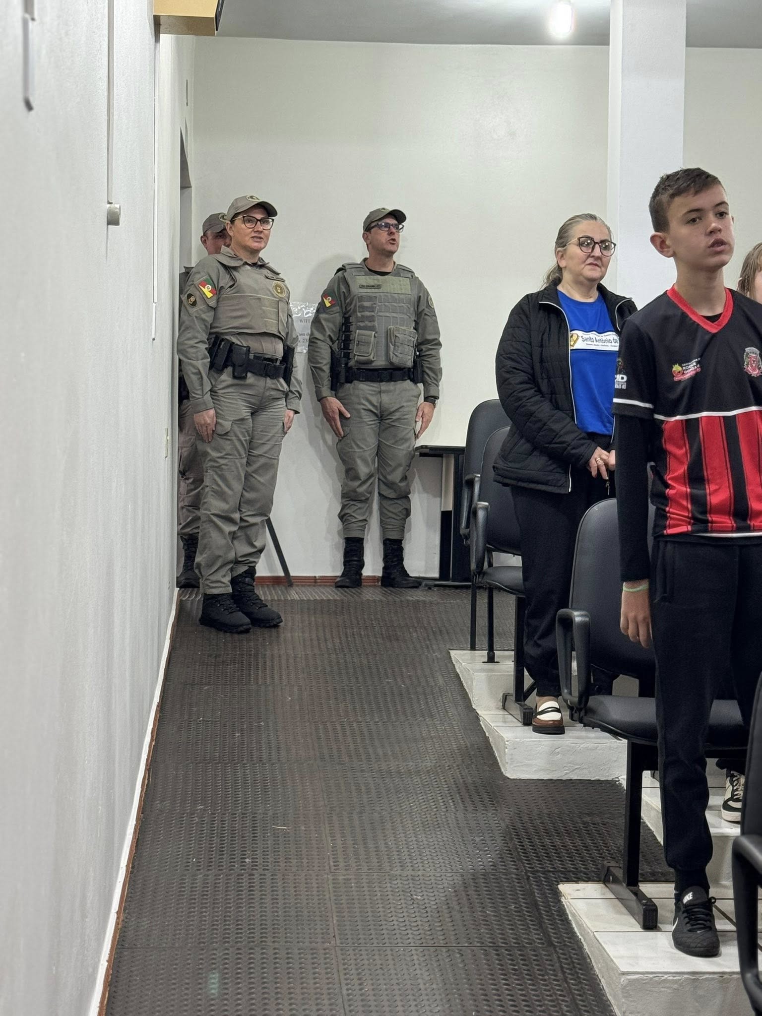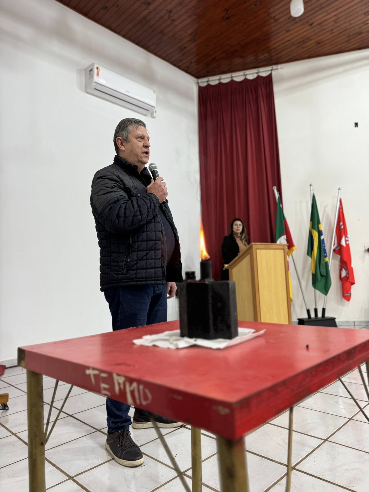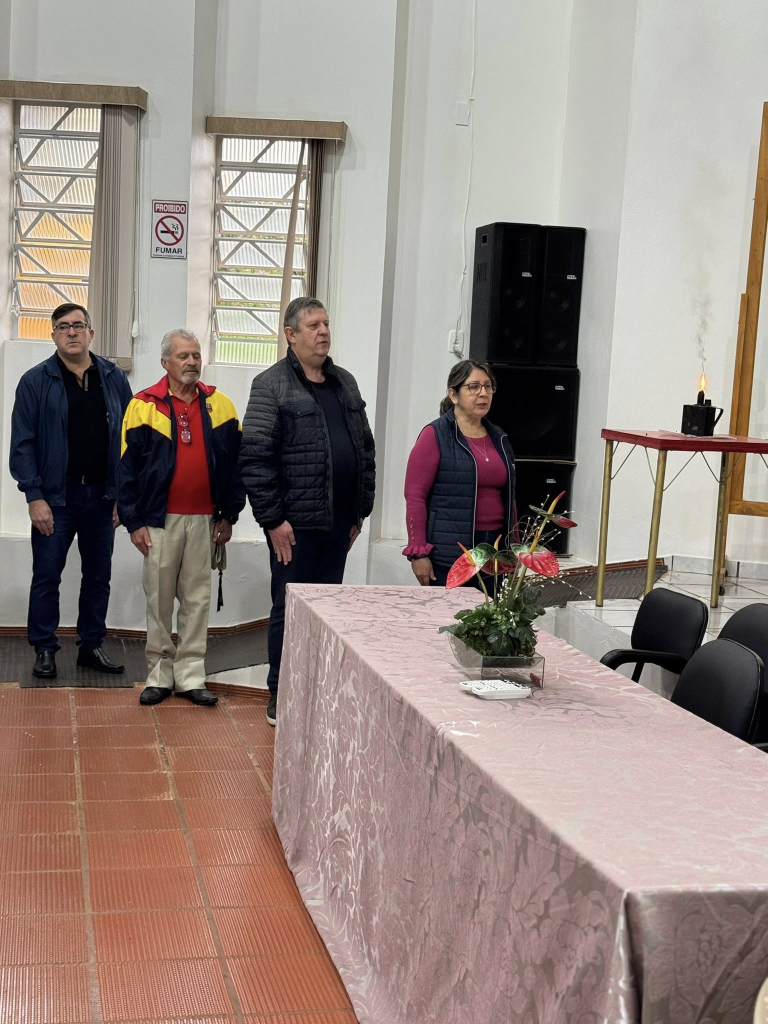 A solenidade aconteceu na Casa de Cultura Nelson Hoffmann e contou com a presença de alunos da Escolinha de Futsal e da Escola Santo Antônio, que prestigiaram o momento cívico.