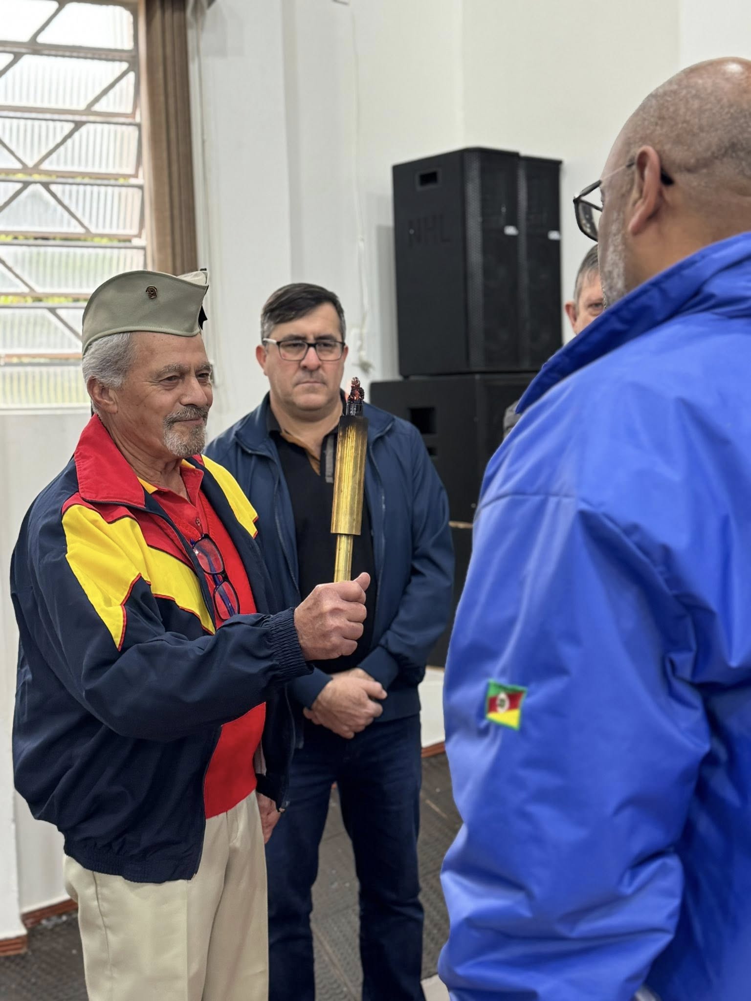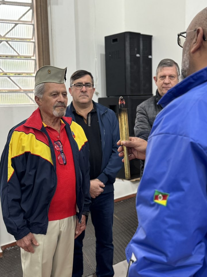 A chama foi entregue ao município pelo diretor da Liga da Defesa Nacional no Estado, Gilmar Sousa Chagas, acompanhado do soldado André Both Pianezzola, do Comando Rodoviário da Brigada Militar.