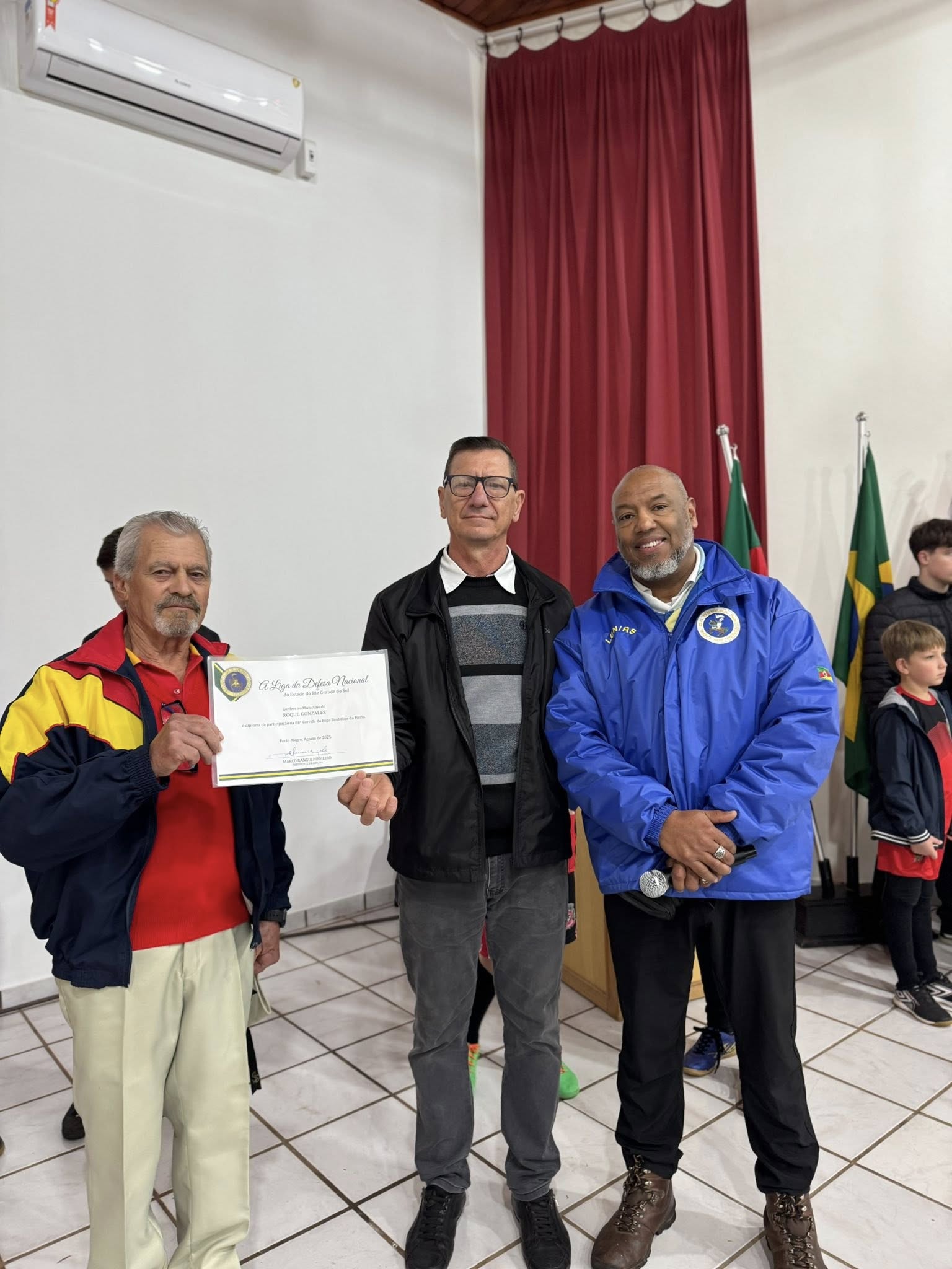 Durante o ato, Roque Gonzales também recebeu o diploma de participação na 88ª edição da Corrida do Fogo Simbólico, documento que será preservado como registro deste importante marco cívico.