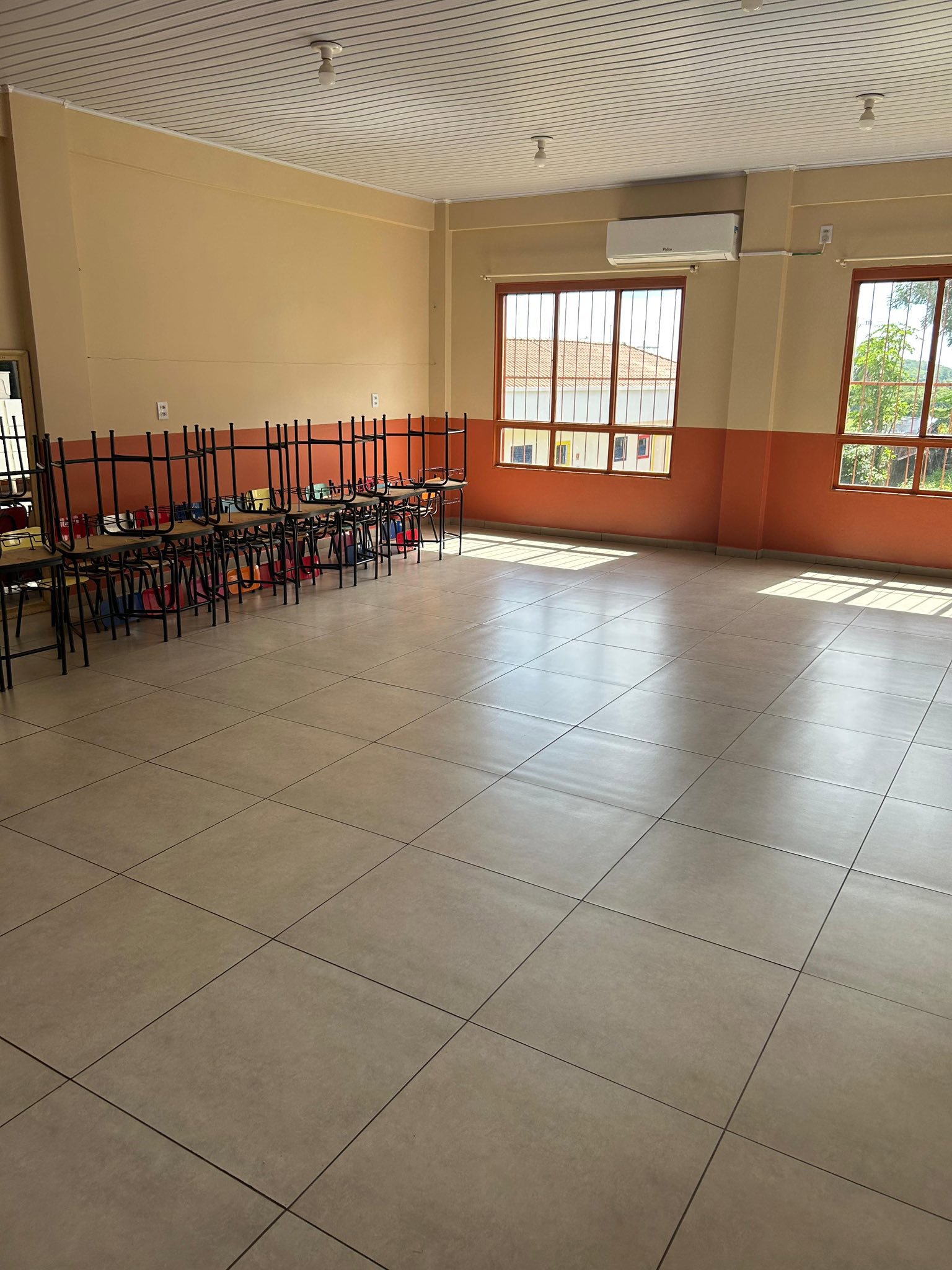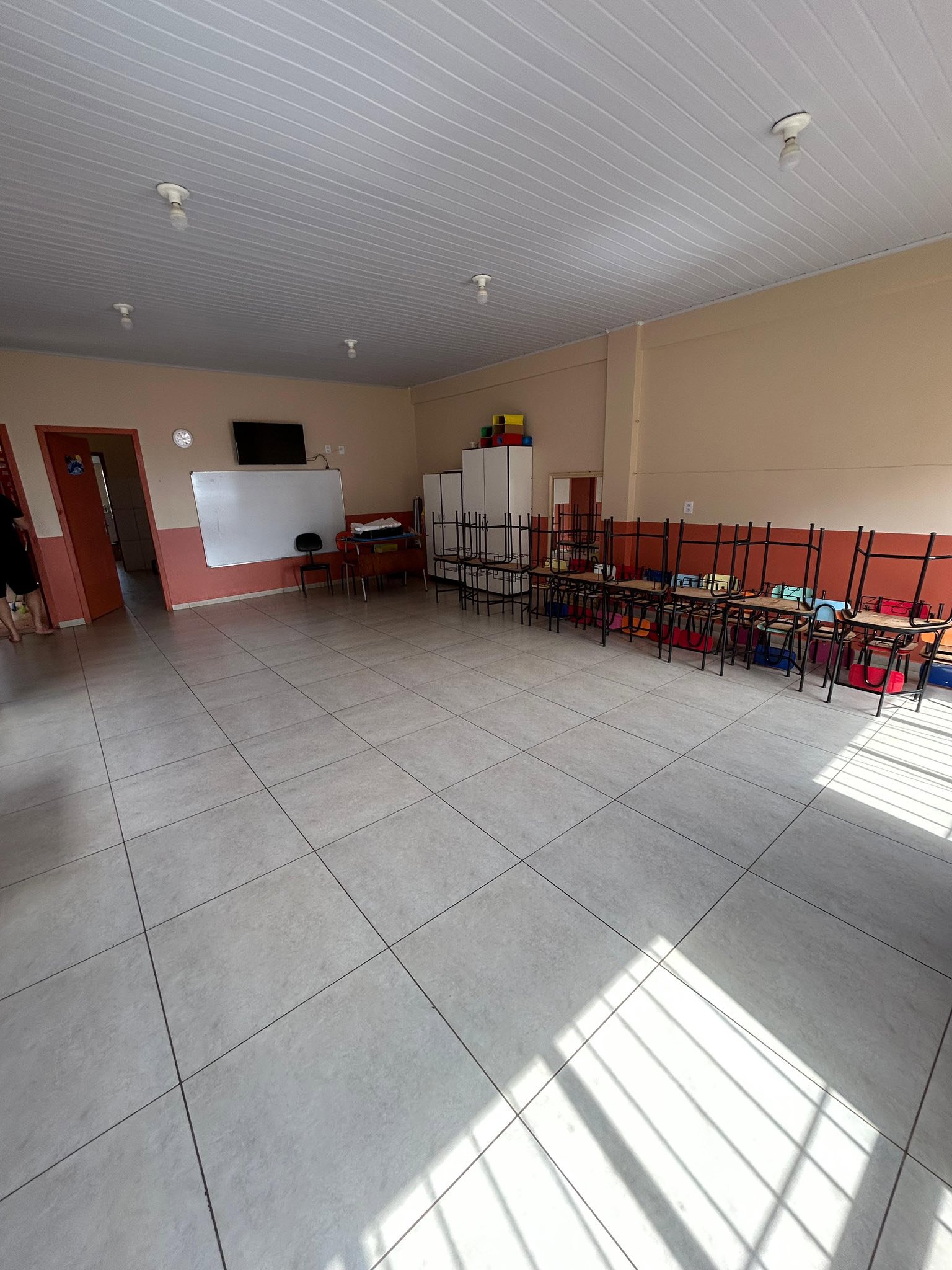 A Escola Santo Antônio de Pádua está passando por melhorias em sua estrutura interna, com serviços de pintura em alguns ambientes e substituição de piso em áreas específicas, realizados pela equipe da Secretaria de Obras.