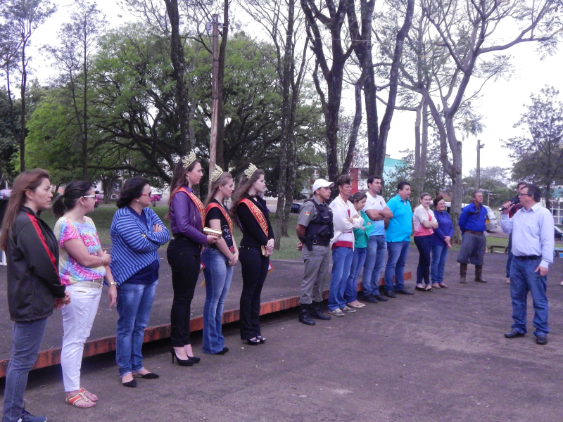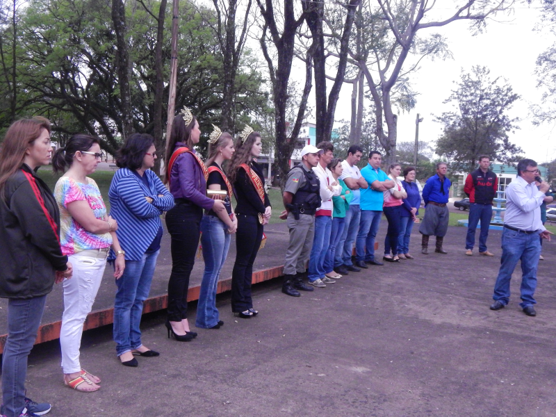 Na abertura da semana da Pátria,do dia 1º de setembro tivemos a participação de diversos segmentos da sociedade, além das escolas municipais Santo Antonio de Pádua e Martin Luther e da Escola Estadual Érico Veríssimo, com suas apresentações alusivas a data. Tivemos na oratória de abertura a participação de Marilene Fátima Cruz Both Secretária de Educação e do Prefeito Municipal, que salientou da importância de cultivarmos os valores do Civismo, além de comentar a respeito da paralisação que ocorre no dia 02 de setembro, devido a grave crise financeira que atravessam as prefeitura da região missioneira, arrastadas pelo impacto financeiro nacional e estadual. Estamos fechando as portas e paralisando o setor publico municipal em uma forma de protesto e também de apoio as outras prefeituras de nossa região missioneira, salientou Sadi.