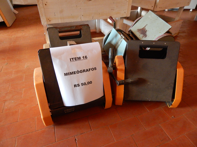 Item 16 – 01(um) LOTE DE SUCATAS DE MIMEÓGRAFOS, nas condições em que se encontram, avaliado em R$ 50,00(cinquenta reais).