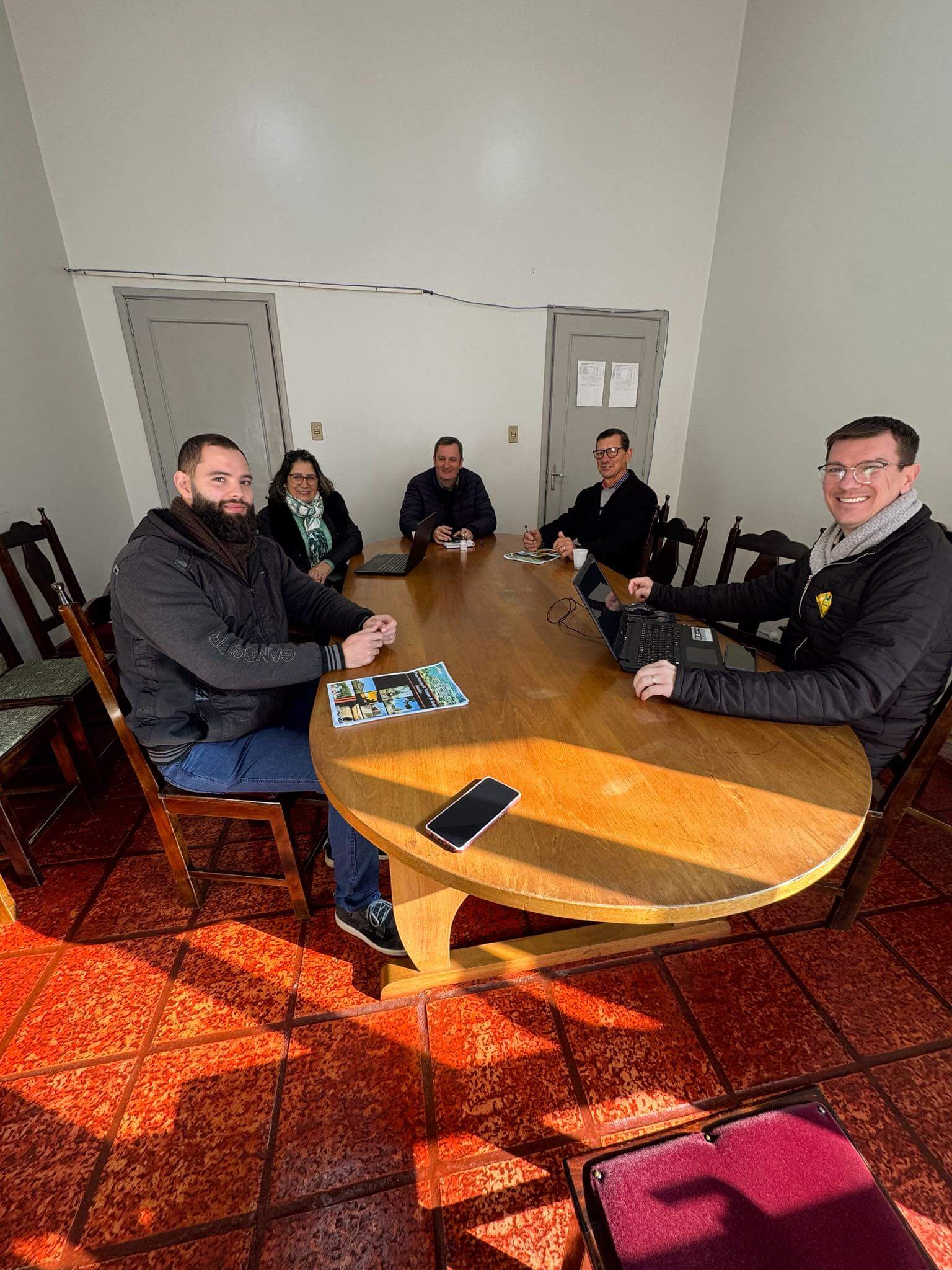 Na manhã desta quinta-feira, 12 de junho, a Administração Municipal deu mais um passo importante rumo ao fortalecimento do turismo local. Em reunião realizada na sala de reuniões da Prefeitura, o prefeito Fernando Mattes Machry recebeu a secretária de Educação, Marilene Cruz Both, o professor, mestre e doutorando Josnei Weber, o diretor do Departamento de Turismo, Iraci Luft, e o presidente da ACISA, Adolfo Bogorni.