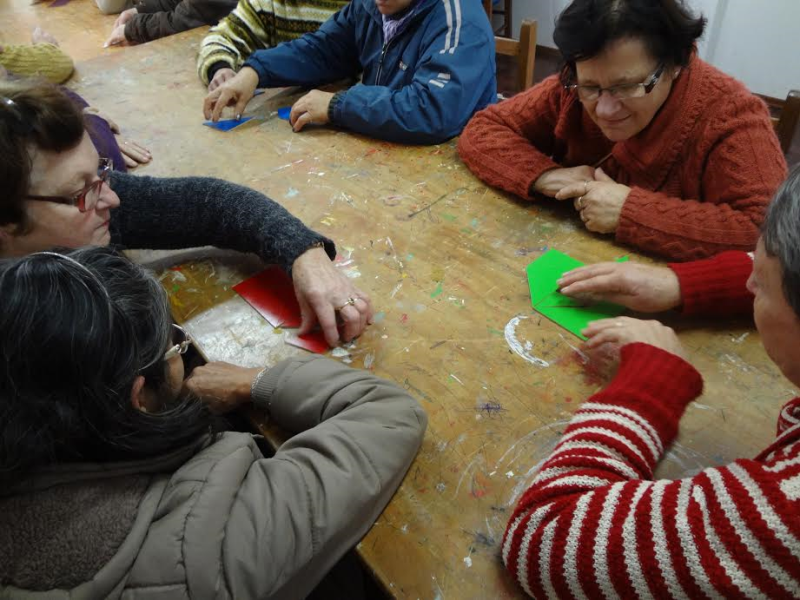 mulheres da terceira idade, o jogo do Tangram ao qual após a montagem