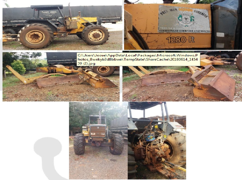 Item 09 - 01 (um) TRATOR AGRÍCOLA 1280, Marca:VALTRA/VALMET, ano/modelo: 1999/1999, com concha e lâmina avaliado em R$ 34.000,00 (trinta e quatro mil reais).