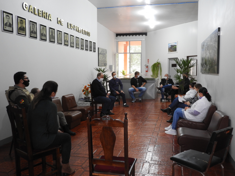Participaram da reunião Secretários Municipais de Administração Rodrigo Issler, Planejamento Liliane Pitrovski, de Educação Tiarles Wust e de Saúde Clari Renner, as enfermeiras da Secretaria de Saúde Ângela e Aretuza, Brigada Militar, Representando o Hospital de Caridade Santo Antônio Ranieri Tonin e o Presidente da Câmara de Vereadores Rudinei Scheeren.