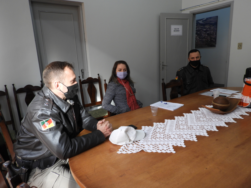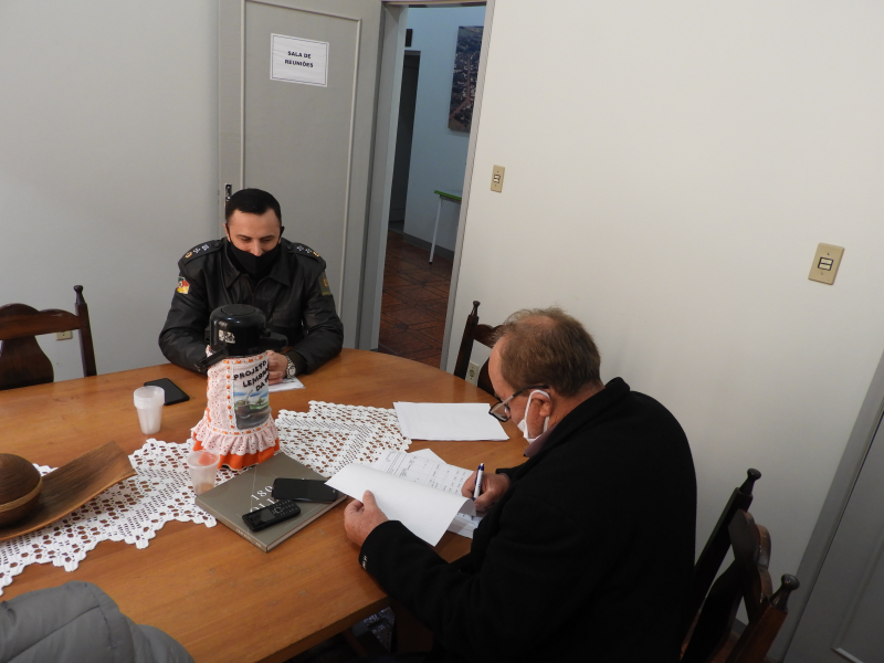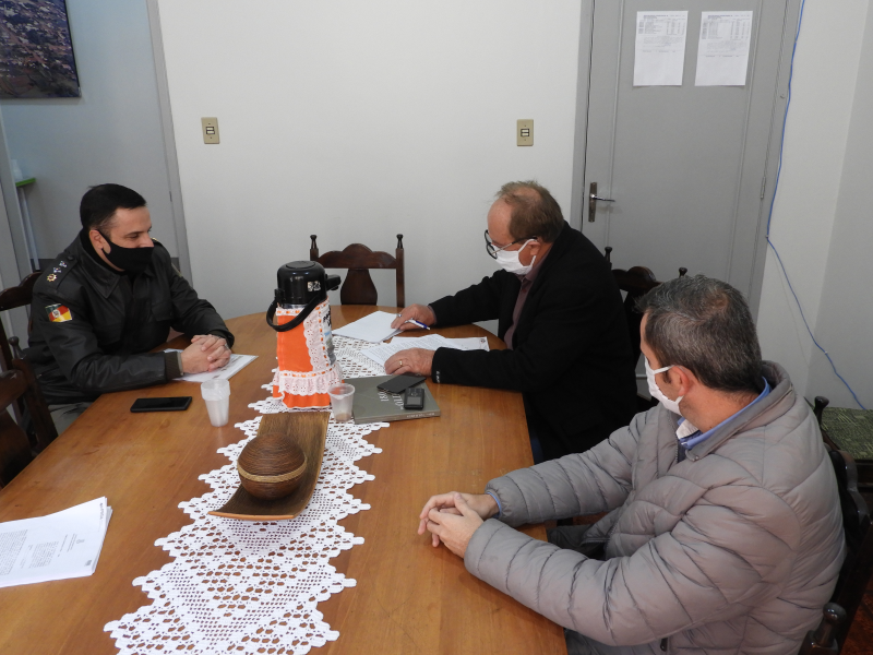 Na manhã desta sexta-feira, 03 de julho, prefeito João Scheeren Haas recebeu a visita do Comandante do 14° BPM Major Eduardo dos Santos Brum para assinatura do Termo de Cooperação que celebram o Estado do Rio Grande do Sul, por intermédio da Secretaria da Segurança Pública, com a interveniência da Brigada Militar, e o Município de Roque Gonzales, visando à conjugação de esforços entre os partícipes para viabilizar e apoiar o processo de segurança pública, por meio de videomonitoramento.