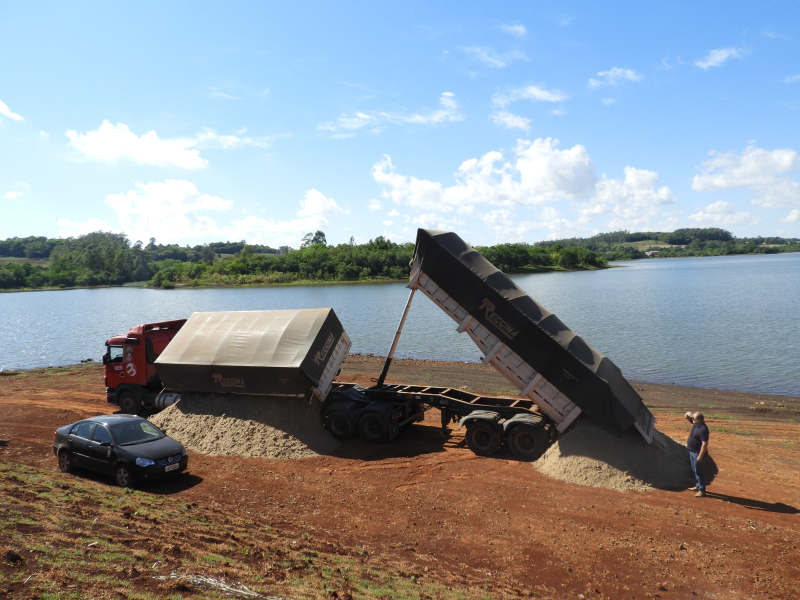 PRIMEIRAS CARGAS DE AREIA CHEGANDO NA PRAINHA