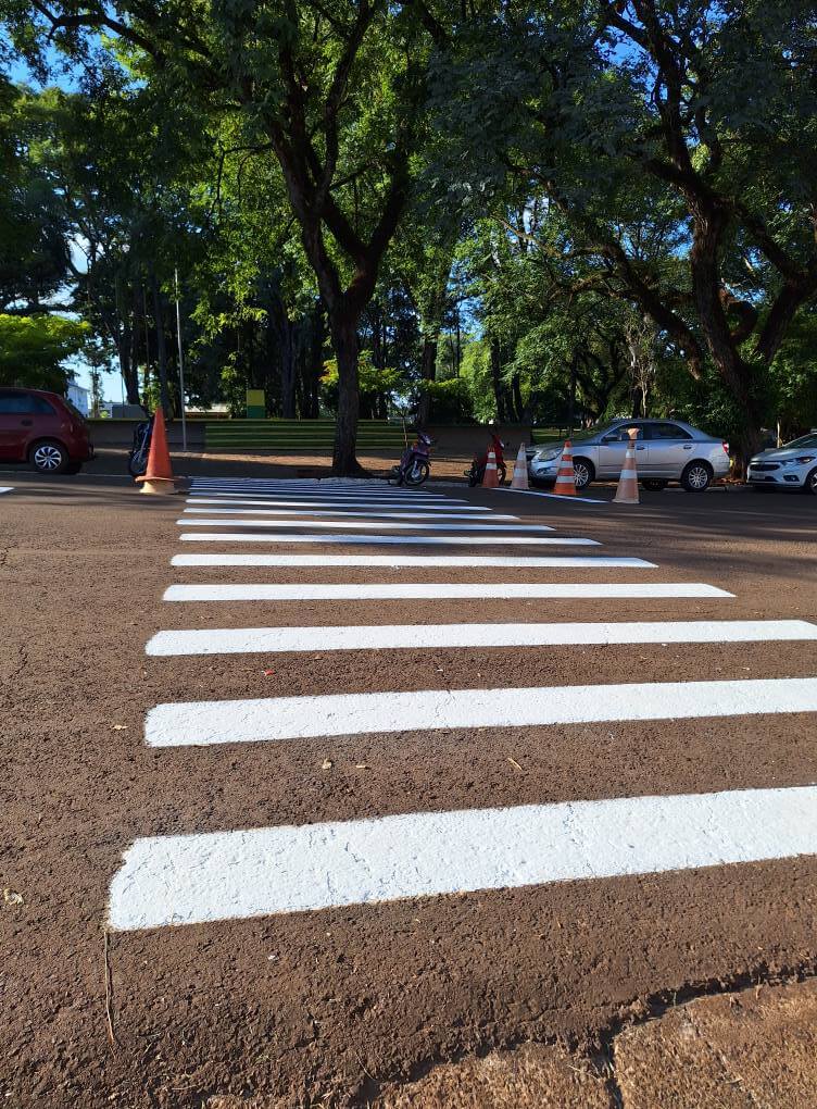 Nas últimas semanas, equipes de trabalho têm atuado na revitalização das pinturas de faixas de pedestres e quebra-molas. O objetivo é reforçar a sinalização e garantir mais segurança aos pedestres durante a travessia.