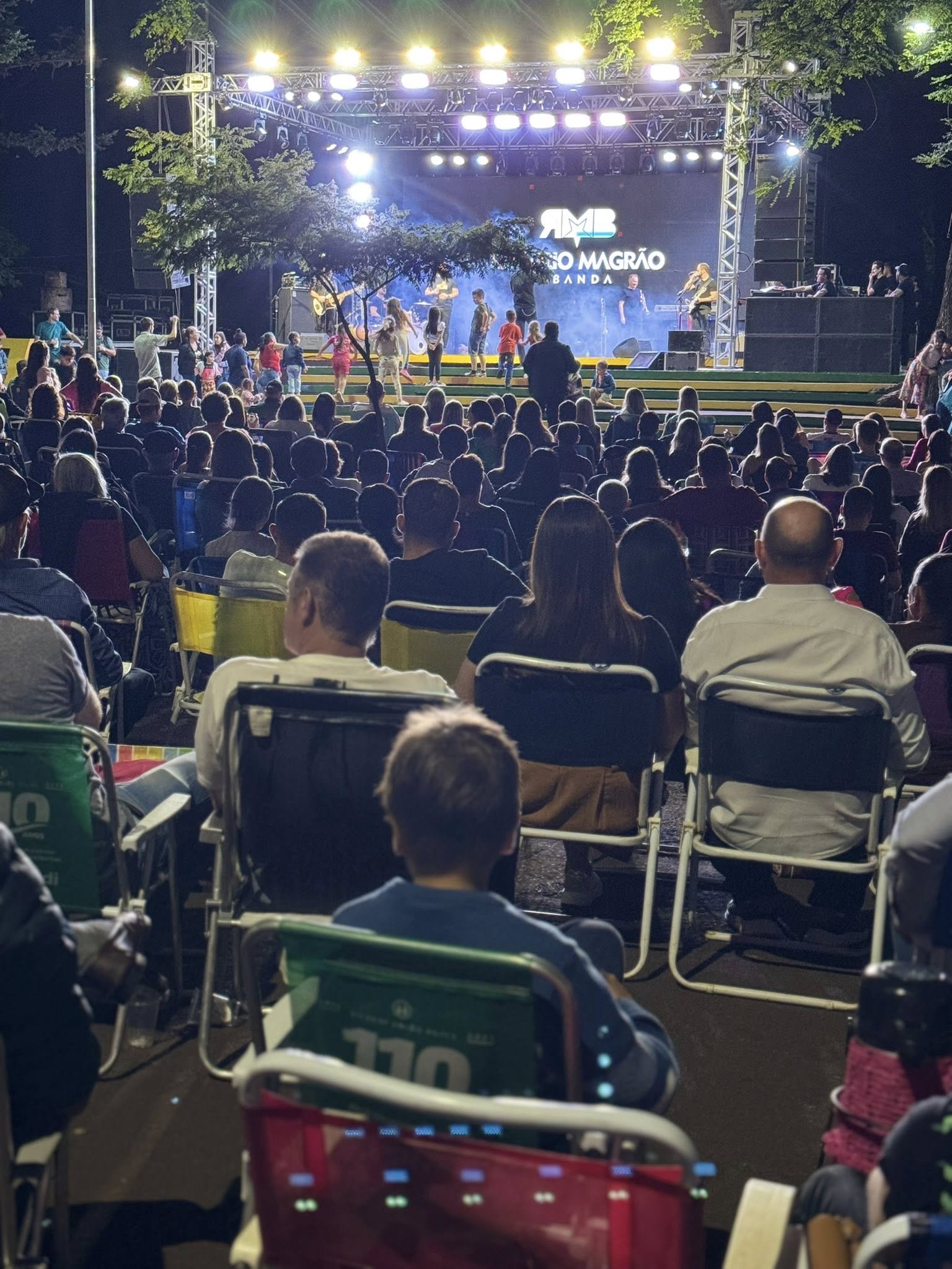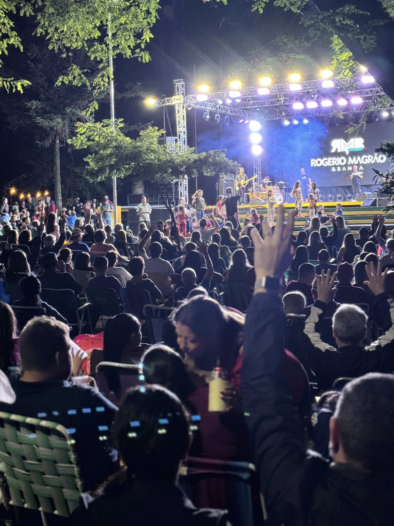 O ponto alto da noite foi o aguardado show com Rogério Magrão & Banda, que animou o público e trouxe uma atmosfera de celebração e alegria para marcar o encerramento das festividades. Com um repertório animado e carisma no palco, o grupo conquistou o público presente, fechando a programação com chave de ouro.