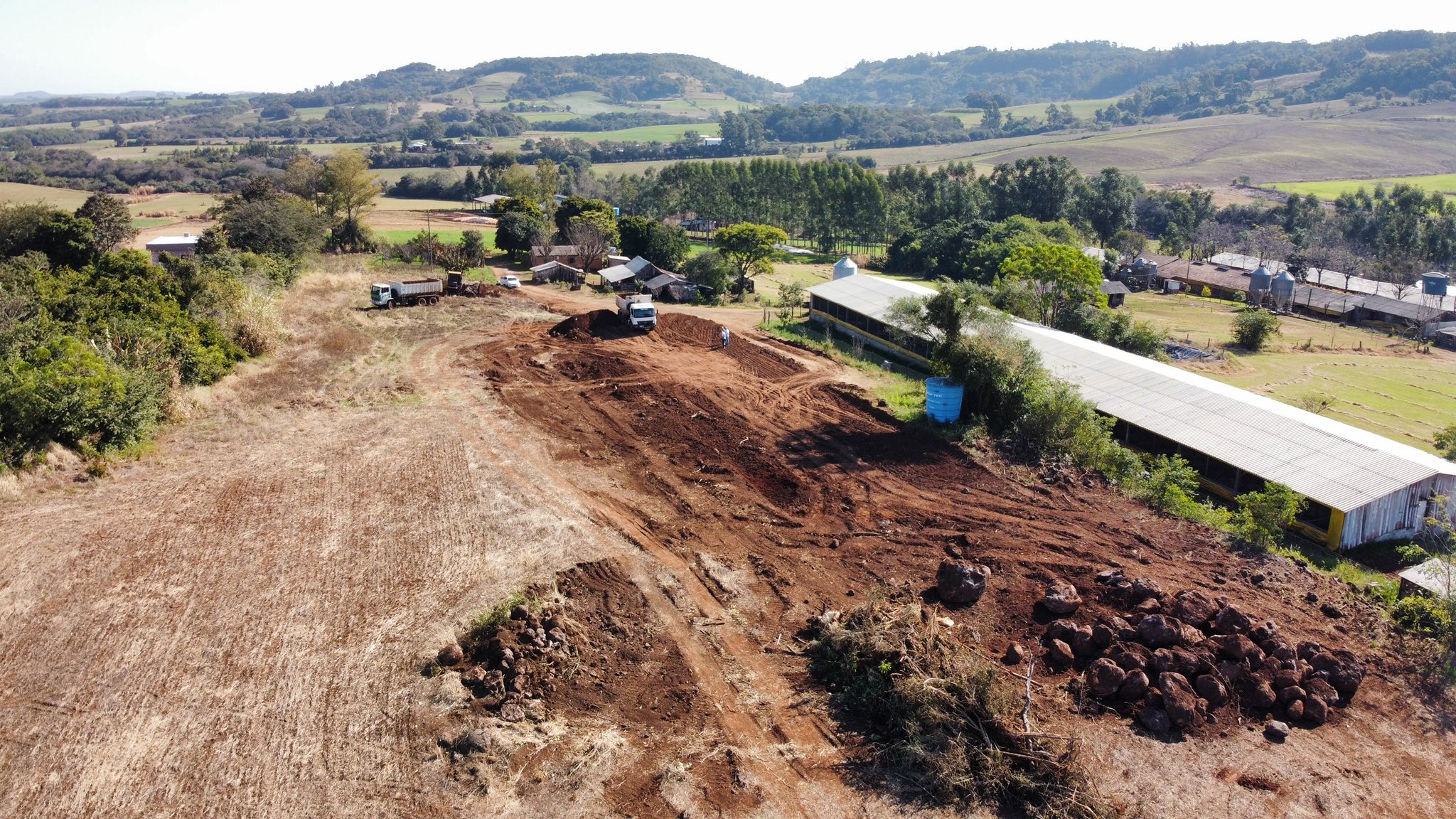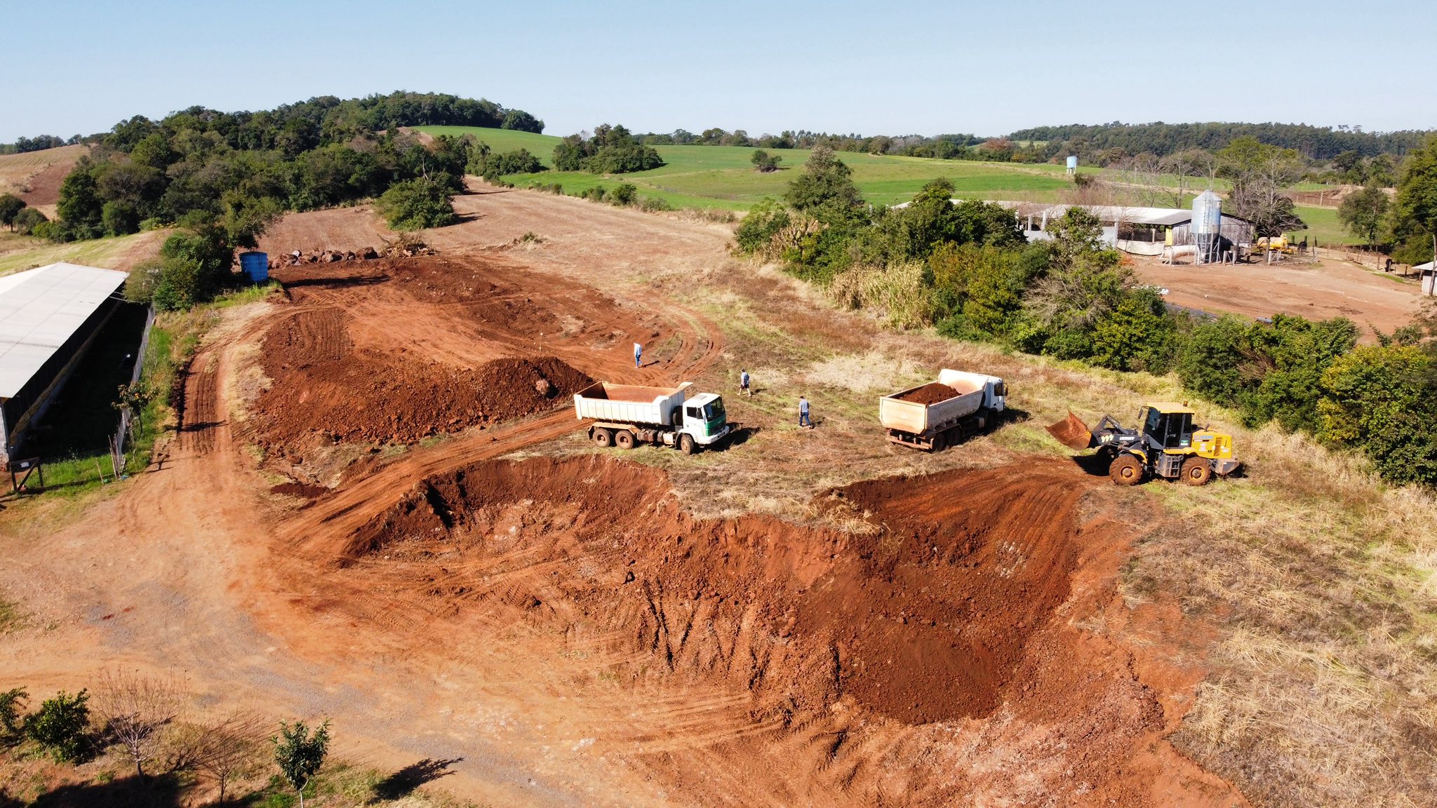 Nesta segunda-feira, o prefeito e o vice-prefeito estiveram acompanhando diversas frentes de trabalho em andamento no município. Entre as ações, destacam-se as melhorias no sistema de drenagem das estradas, a fase final das obras do novo espaço esportivo nos bairros Santo Antônio e Progresso, a execução de terraplanagens em propriedades Rurais, manutenções nas estradas do interior e o andamento das obras de calçamento.