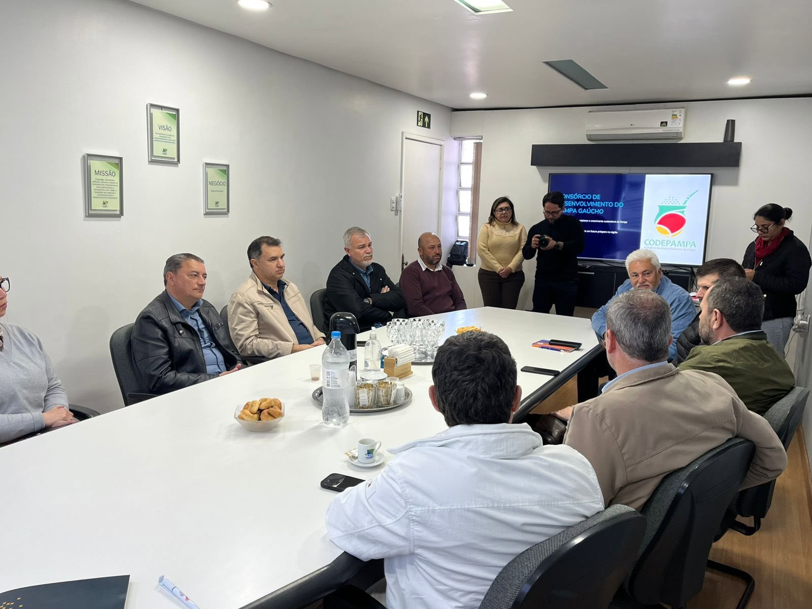 Na manhã da última terça-feira (09), o prefeito Fernando Mattes Machry, juntamente com demais gestores da Associação dos Municípios das Missões (AMM), participou de uma visita técnica ao Consórcio Intermunicipal de Desenvolvimento do Pampa Gaúcho (CODEPAMPA), com o objetivo de conhecer de perto a estrutura e o funcionamento da entidade, que atualmente reúne 18 municípios associados.