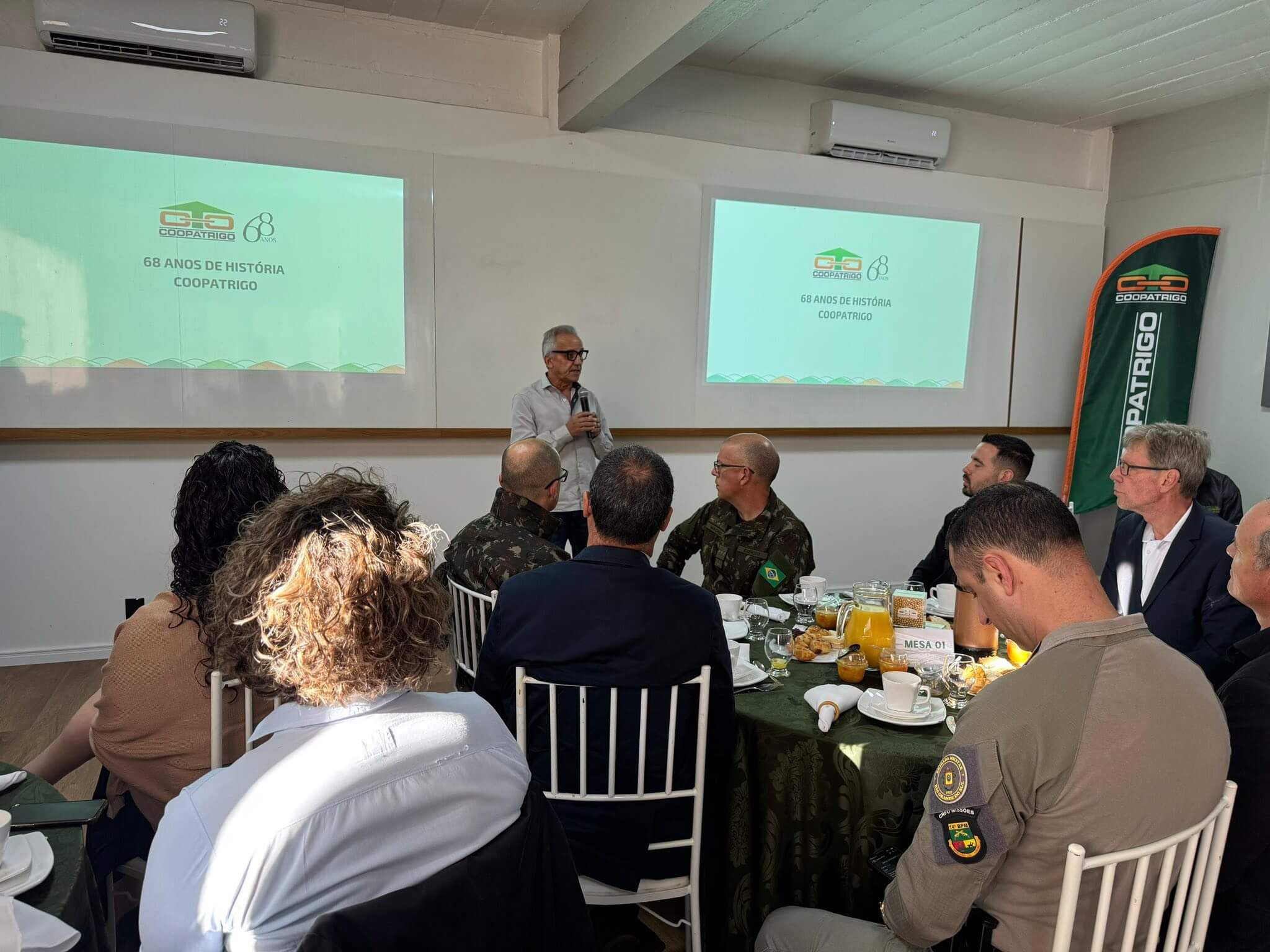 Ao participar do ato, o prefeito em exercício destacou a relevância da cooperativa para o fortalecimento da agricultura e parabenizou a Coopatrigo pela trajetória de conquistas, pelo trabalho junto aos associados e pelo compromisso com o desenvolvimento regional.