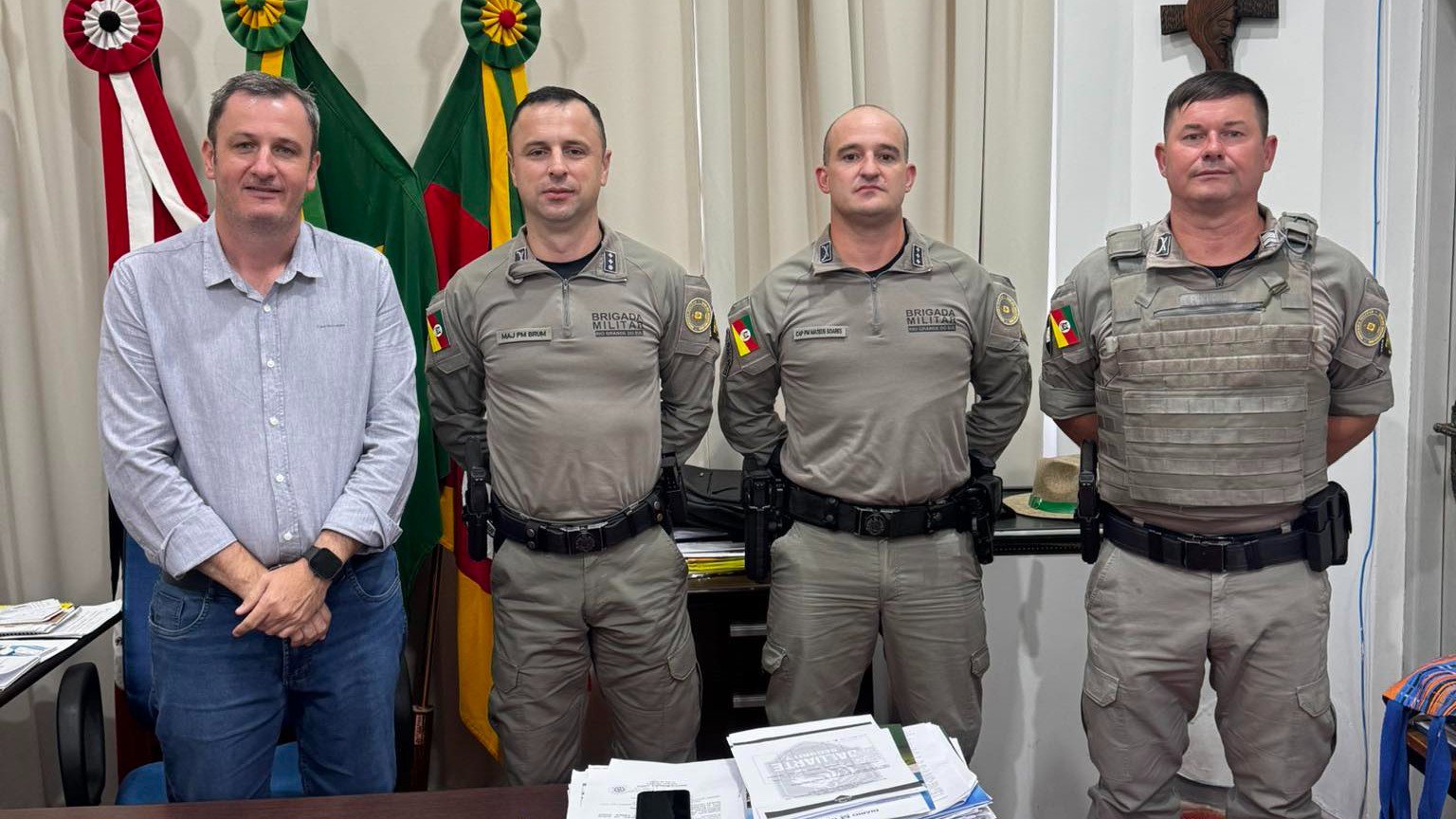 Na tarde desta quinta-feira, 04 de dezembro, o prefeito recebeu em seu gabinete o comandante do 14º Batalhão de Polícia Militar, Major Eduardo dos Santos Brum, acompanhado do Capitão PM Mateus Soares e do Sargento Paulo César Vietmeier.
