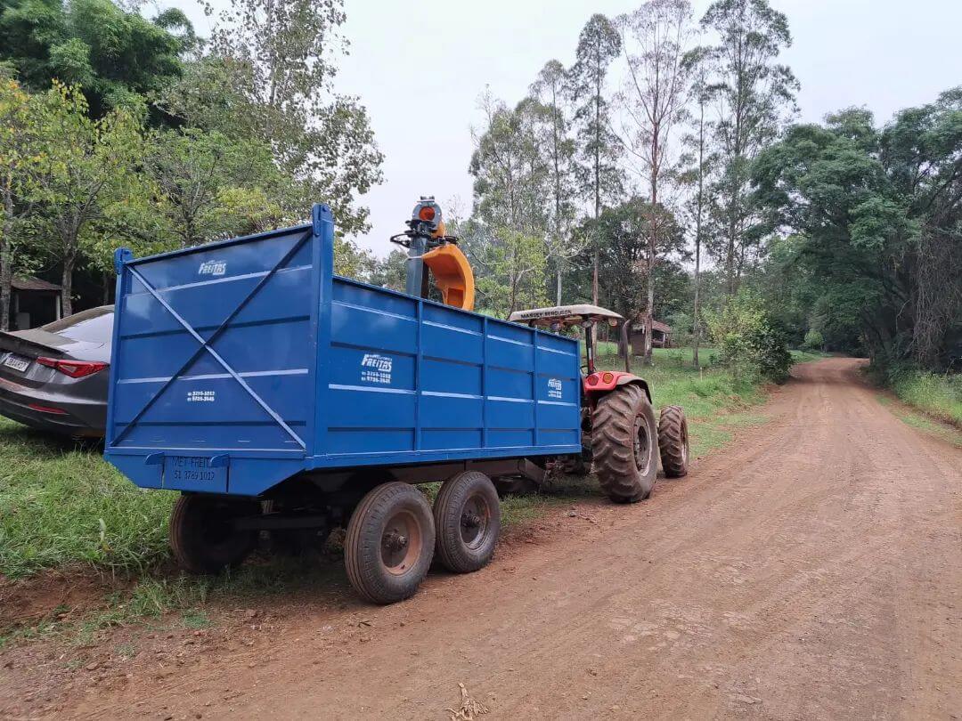 🚜 Uma carreta agrícola basculante metálica com capacidade de 7,5 toneladas.