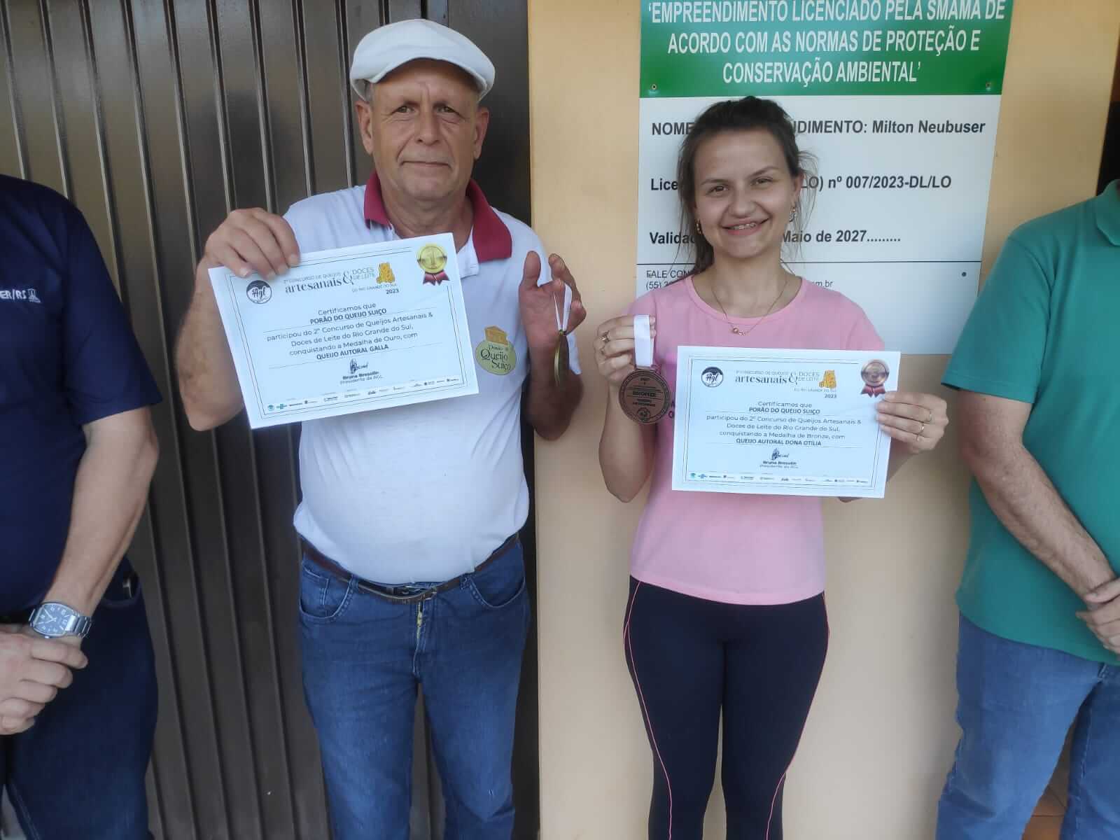 🧀 A agroindústria familiar Porão do Queijo Suíço do Distrito de Dona Otília recebeu no dia 03 de agosto, premiação do 2º Concurso de Queijos Artesanais e Doces de Leite do Rio Grande do Sul - edição 2023.