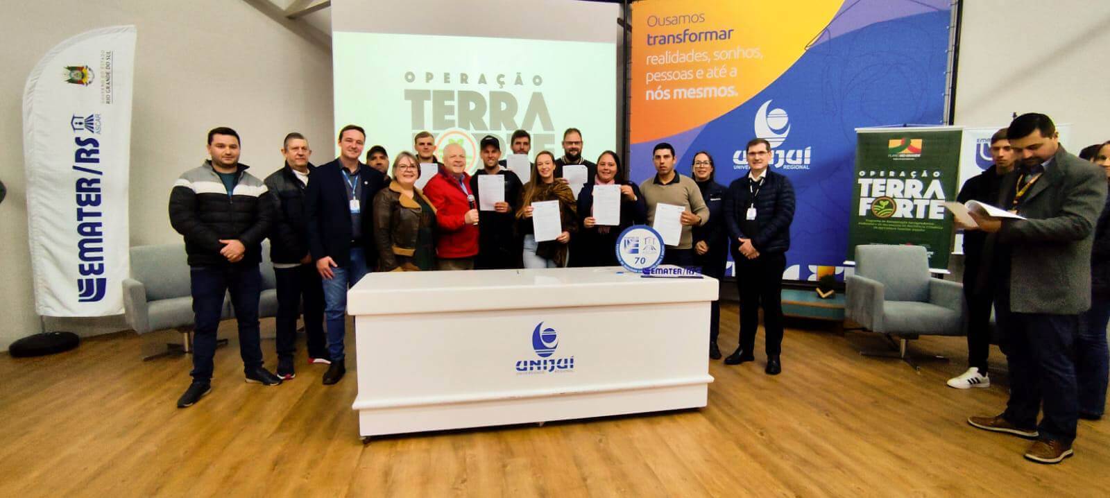 O Terra Forte é a maior iniciativa de recuperação de solos já realizada no Estado, com investimento inicial de R$ 300 milhões, visando fortalecer a agricultura familiar por meio de apoio técnico, repasse de recursos, aquisição de equipamentos e ações sustentáveis. O programa será executado pela Emater/RS e poderá beneficiar até 15 mil agricultores, com recursos de até R$ 30 mil por propriedade.