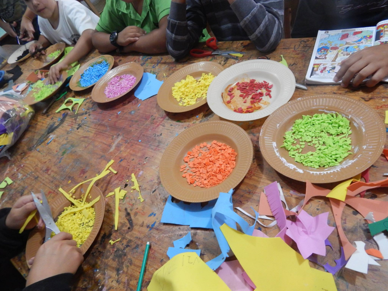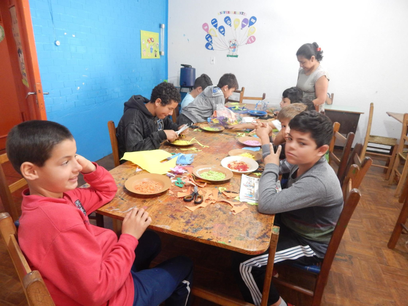 O grupo de crianças do Serviço de Convivência e Fortalecimento de Vínculos confeccionou um mosaico, utilizando retalhos de EVA. A atividade com mosaico tem como objetivo trabalhar a coordenação motora dos integrantes para trabalhos artesanais, sendo que são necessárias ações de recorte e colagem, além de influenciar na criatividade e estimular a ajuda entre os membros.