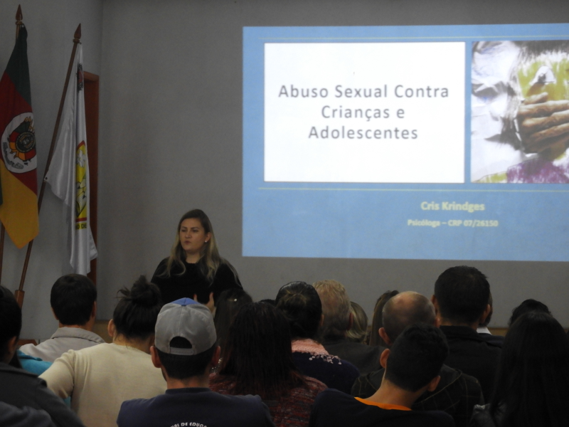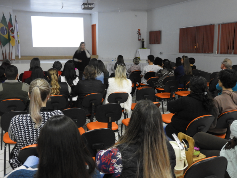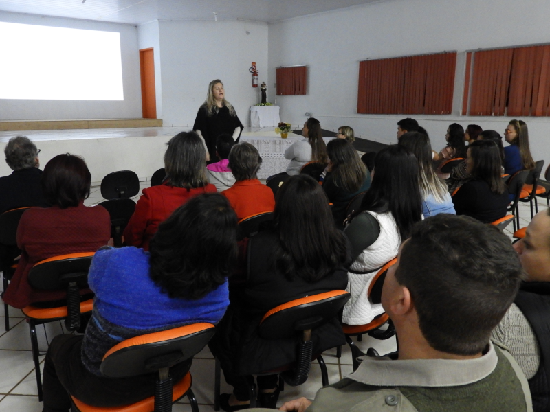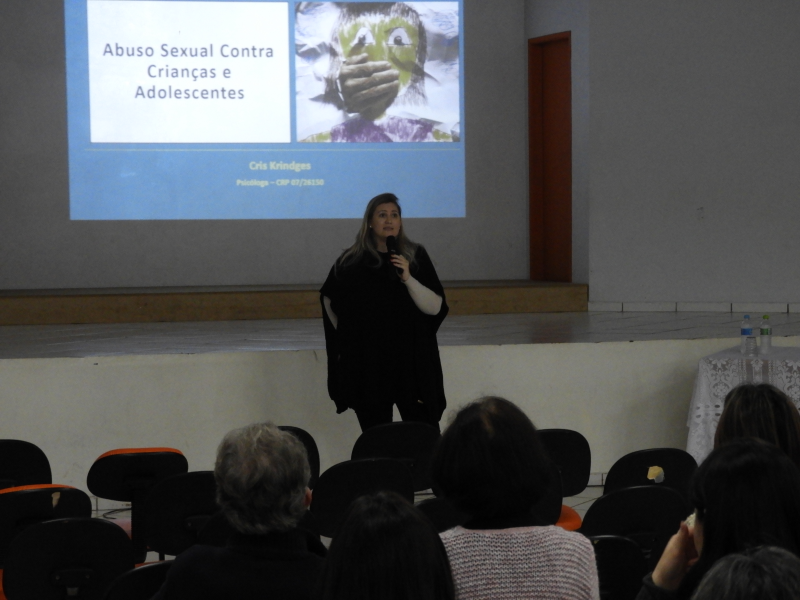 O encontro contou com um bom público no o auditório da EMEF Santo Antônio de Pádua. a painelista convidada foi a psicóloga Cris Aline Krindges , que falou sobre sexualidade no desenvolvimento infantil em suas diferentes faixas etárias, apontando referências de comportamentos esperados e não-esperados.