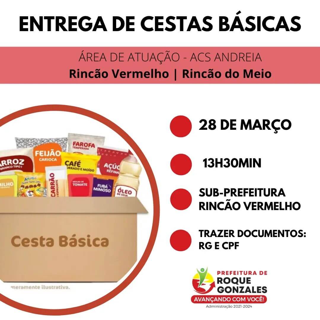 ❌ IMPORTANTE! Trazer o RG e CPF para retirada da cesta básica.