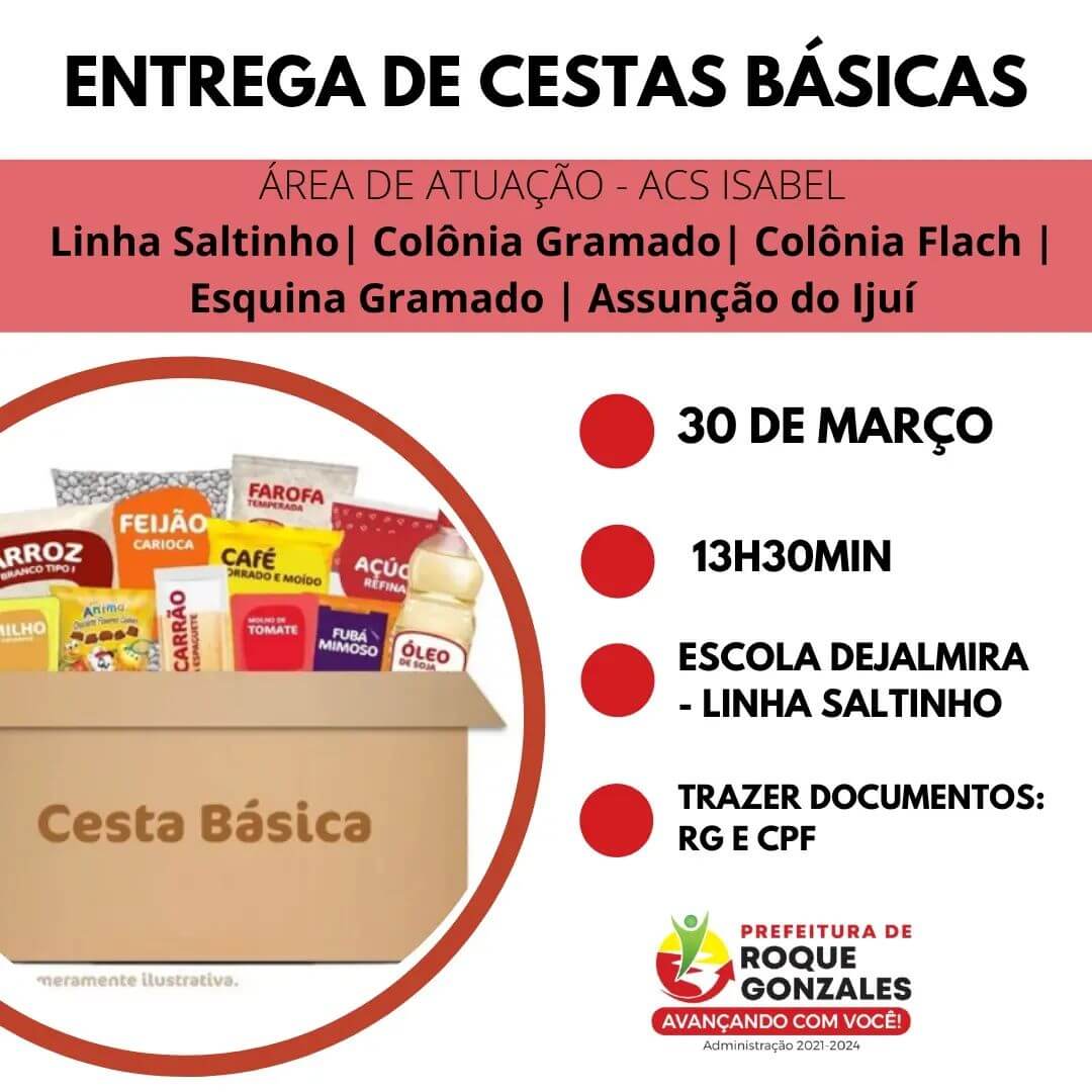 ❌ IMPORTANTE! Trazer o RG e CPF para retirada da cesta básica.