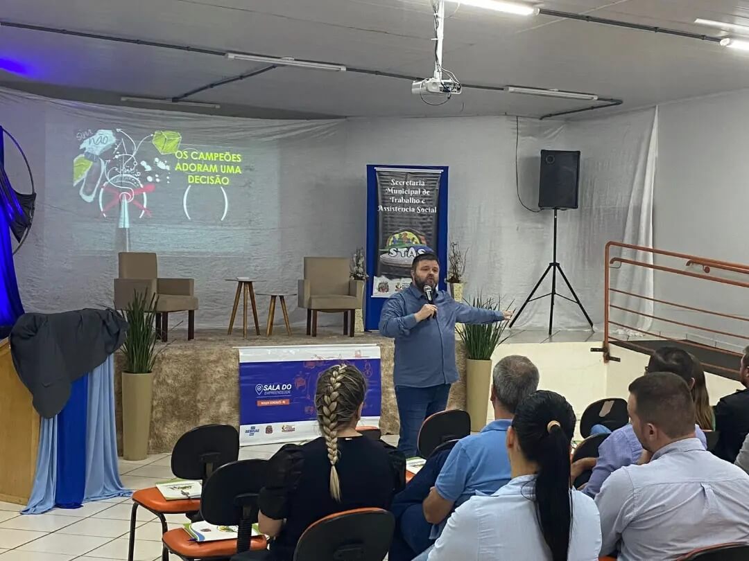 📆 Na noite desta segunda-feira (27), a Administração Municipal por meio da Secretaria Municipal de Trabalho e Assistência Social em parceria com o SEBRAE- Sala do Empreendedor trouxeram a Roque Gonzales o palestrante renomado Ronan Mairesse para falar sobre "Atitude Mente de Campeão: na vida profissional e pessoal".
