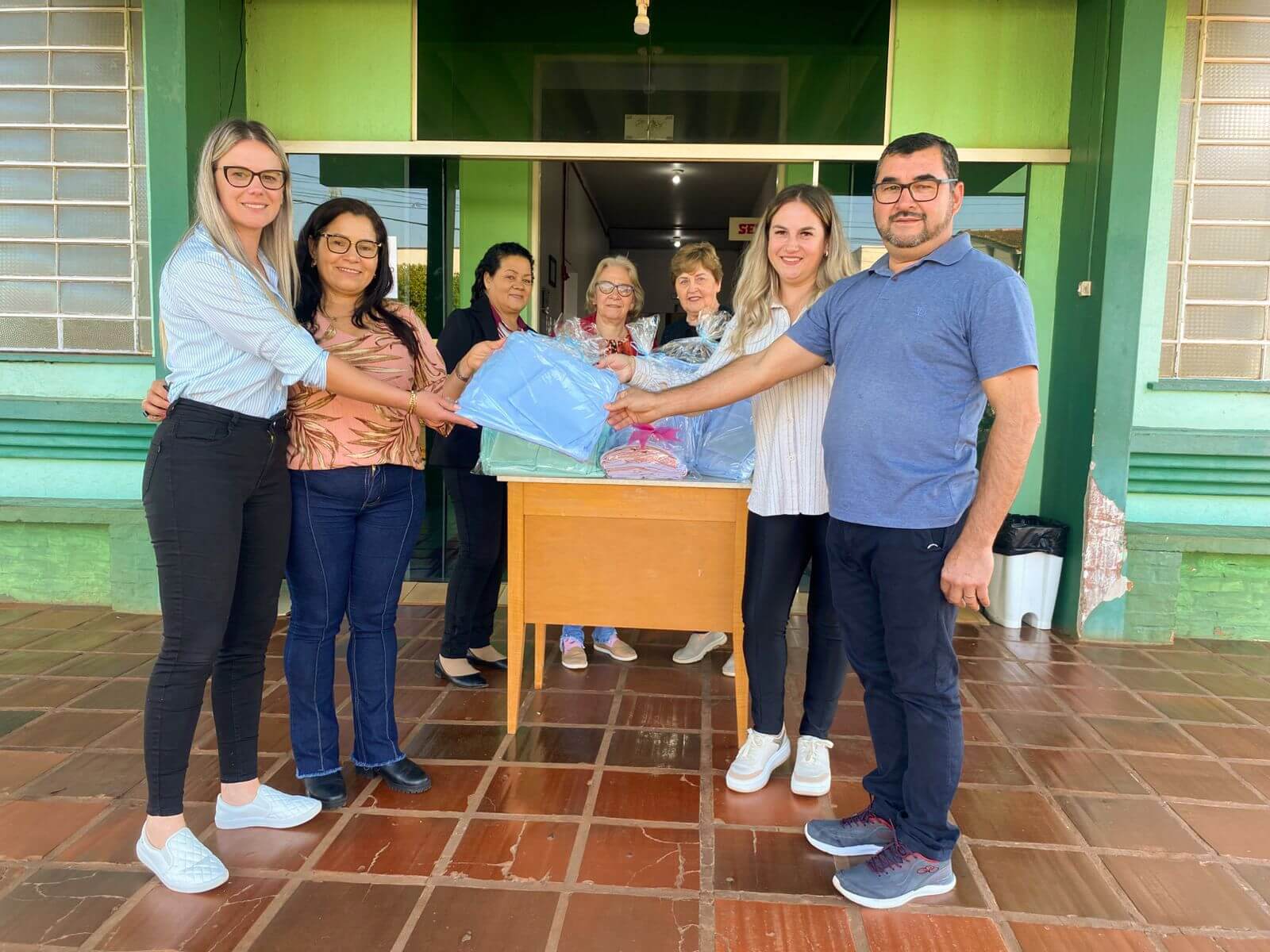 Na tarde desta segunda-feira, o grupo de voluntárias dos grupos de serviço, juntamente com a primeira-dama Berenice Frank, a secretária de Trabalho e Assistência Social Vanessa Wust Berwaldt e a responsável pelo projeto, Gilmara Barboza, realizou a entrega de novos enxovais ao Hospital de Caridade Santo Antônio.