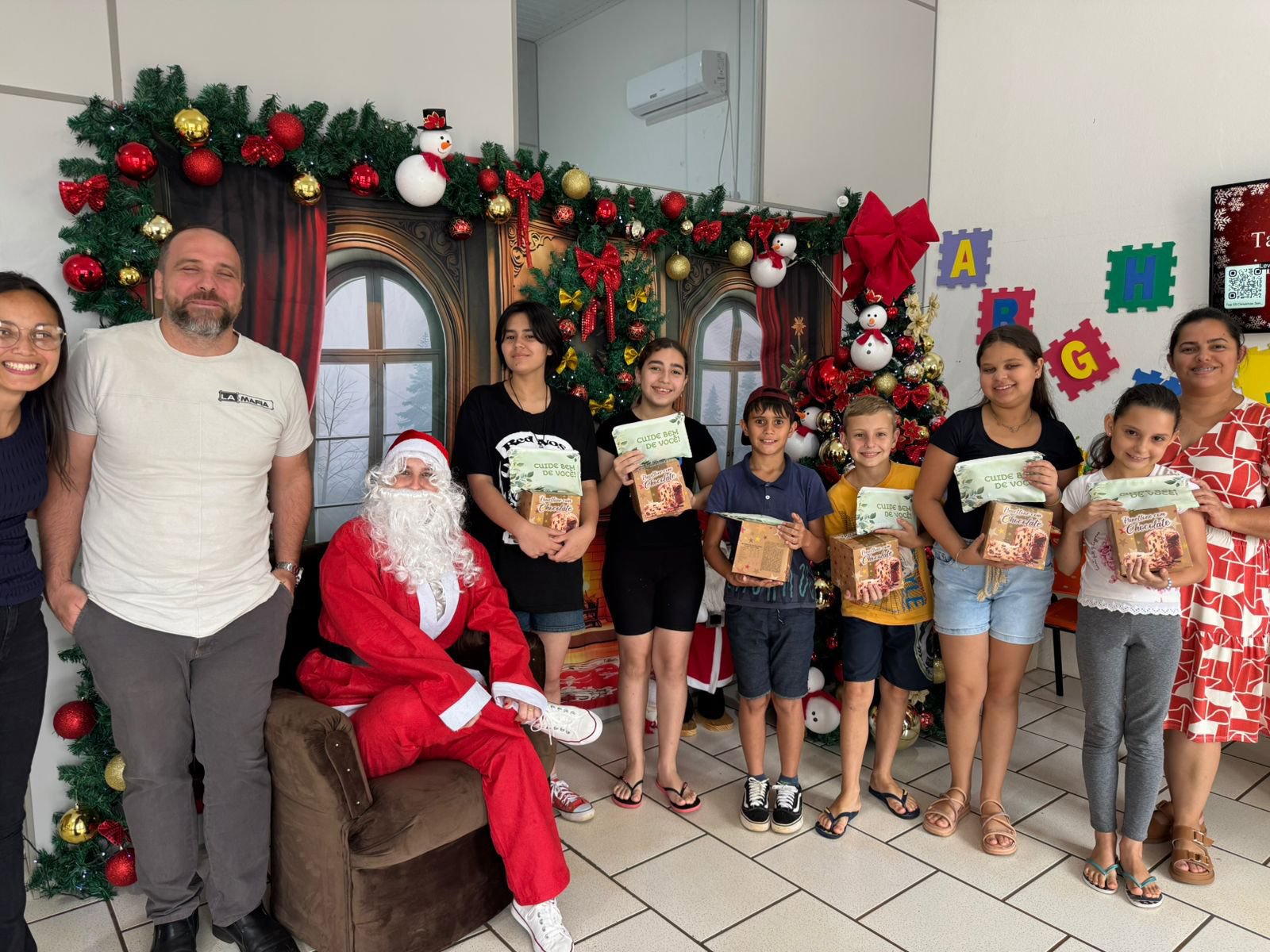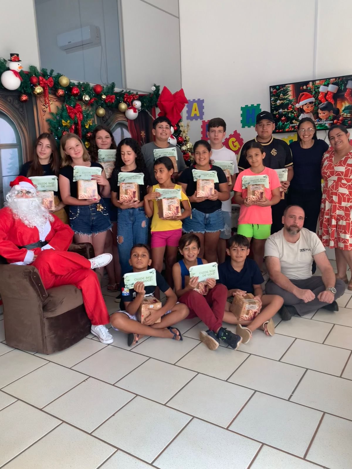 Para tornar o momento ainda mais especial, os participantes receberam a visita do Papai Noel, que distribuiu presentes e doces, trazendo alegria e encantamento ao encerramento.
