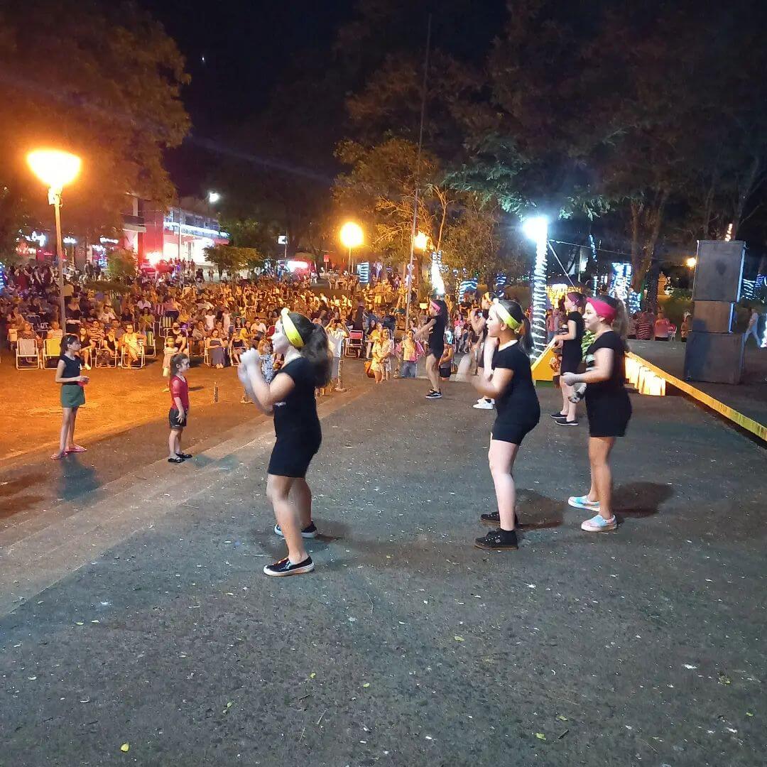 Uma alegria que contagiou quem estava presente. Assim foi as apresentações das crianças do Centro Pedagógico Espaço da Criança, dos alunos Isabeli, João Vitor e Pablo das Escolas Municipais Martin Luther e Santo Antônio de Pádua, das meninas do Espaço Saúde Academia e dos jovens da Invernada Artística Juvenil do CTG Sentinelas da Cascata.