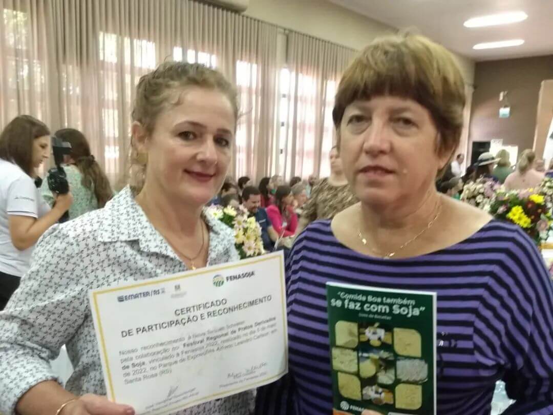 📆 Nesta quinta-feira (05), a equipe do escritório da Emater/RS de Roque Gonzales juntamente com a Presidente do Conselho Municipal de Assistência Social, Mirian de Oliveira Barcelos e as representantes dos Clube de Mães Cantinho das Margaridas (Colônia Limeira) e Nossa Senhora do Rosário (Linha Poço Preto) participaram do Festival de Pratos derivados de Soja na Fenasoja 2022.