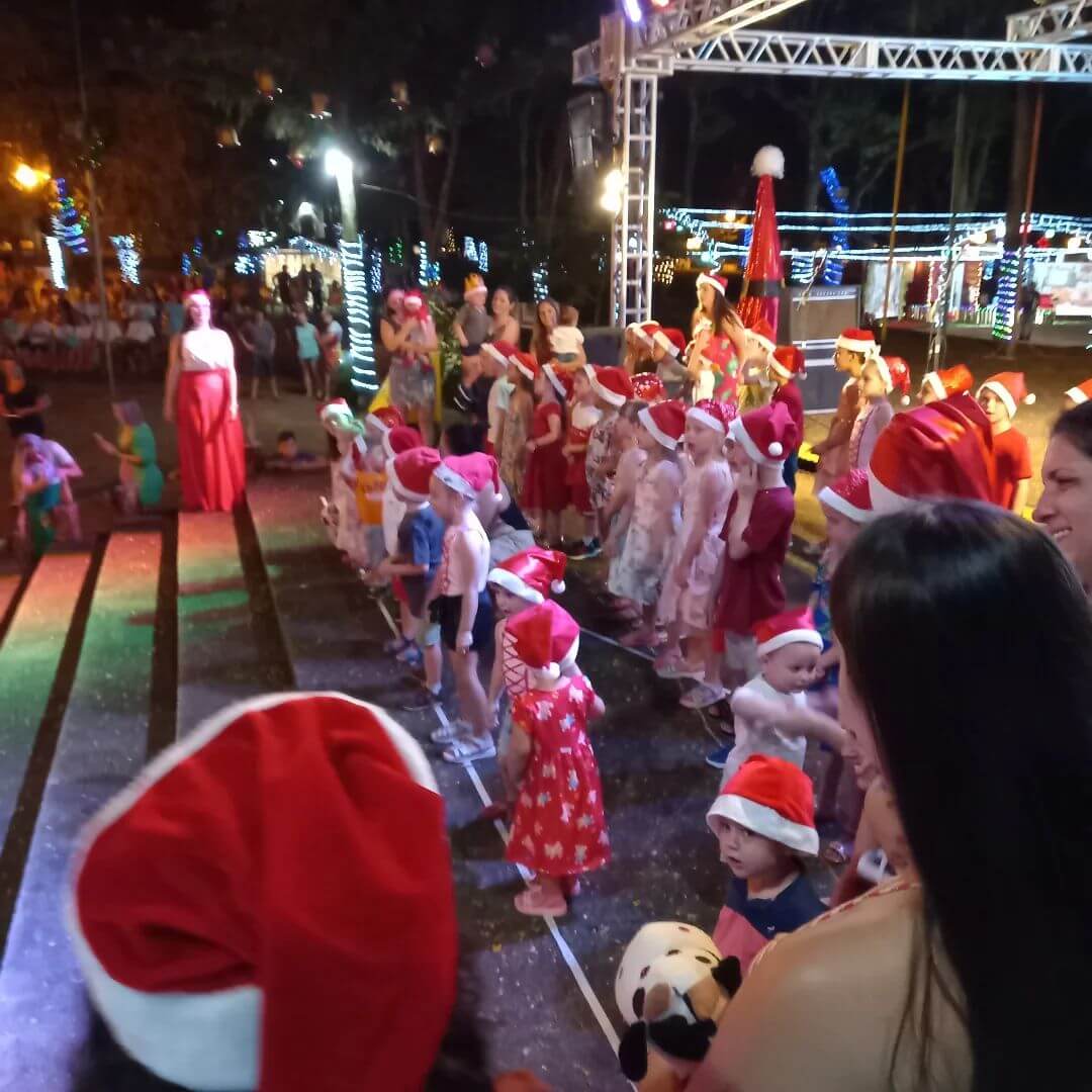 🎅 A noite ainda trouxe a alegria no rosto das crianças com a chegada do bom velhinho trazendo o espírito natalino, alegria, sonhos e recebendo os pedidos de Natal das crianças.