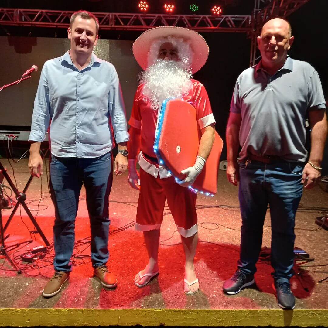 🎅 A chegada do Papai Noel animou a criançada, uma vez que, o Papai Noel veio pela Prainha de Roque Gonzales com prancha de surf inclusive. Entregou os pacotinhos para a criançada. Teve também entrega de um mimo para as pessoas que realizaram as decorações natalinas.