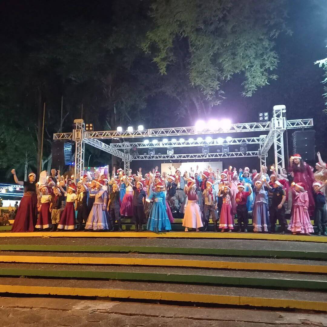 🎄 Nesta noite de quarta-feira, 21 de dezembro, a Administração Municipal por meio da Coordenação do Natal Luz dos Anjos e em parceria com o CTG Sentinelas da Cascata realizaram a encenação do Natal Gaúcho com o nascimento do Piazito. A encenação narrou a história do nascimento de Jesus feito pelos gaúchos, do qual teve interpretação, declamação, canto e, claro, muita dança.