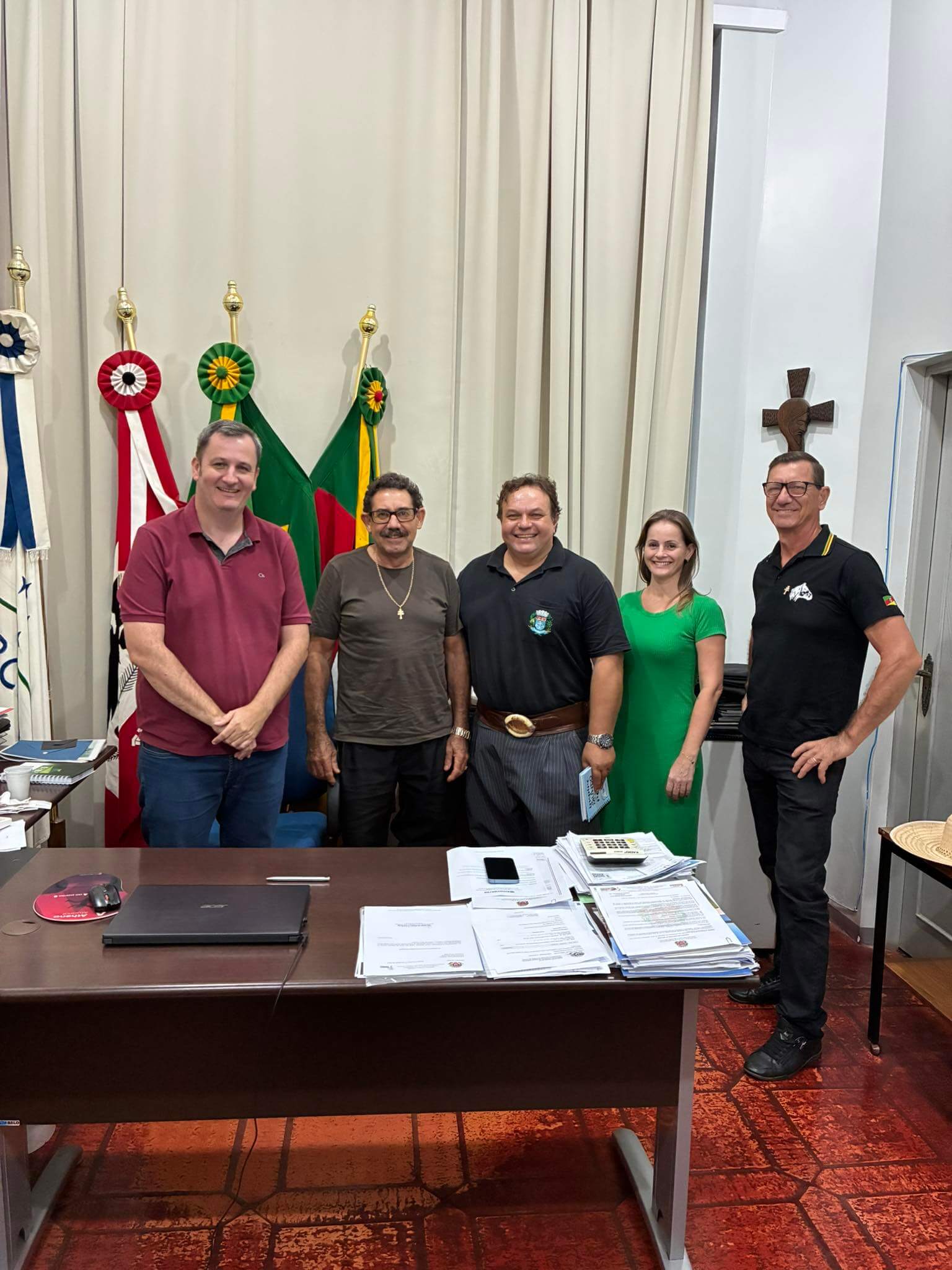 O prefeito Fernando Mattes Machry, juntamente com o diretor de Turismo, Iraci Luft, e a diretora de Educação, Gicelda Ledur, recebeu na tarde desta segunda-feira (31) os coordenadores da Trilha dos Santos Mártires das Missões, Charlei Knebel Willers e Antônio Sérgio Lopes da Silva, responsáveis pela cavalgada.