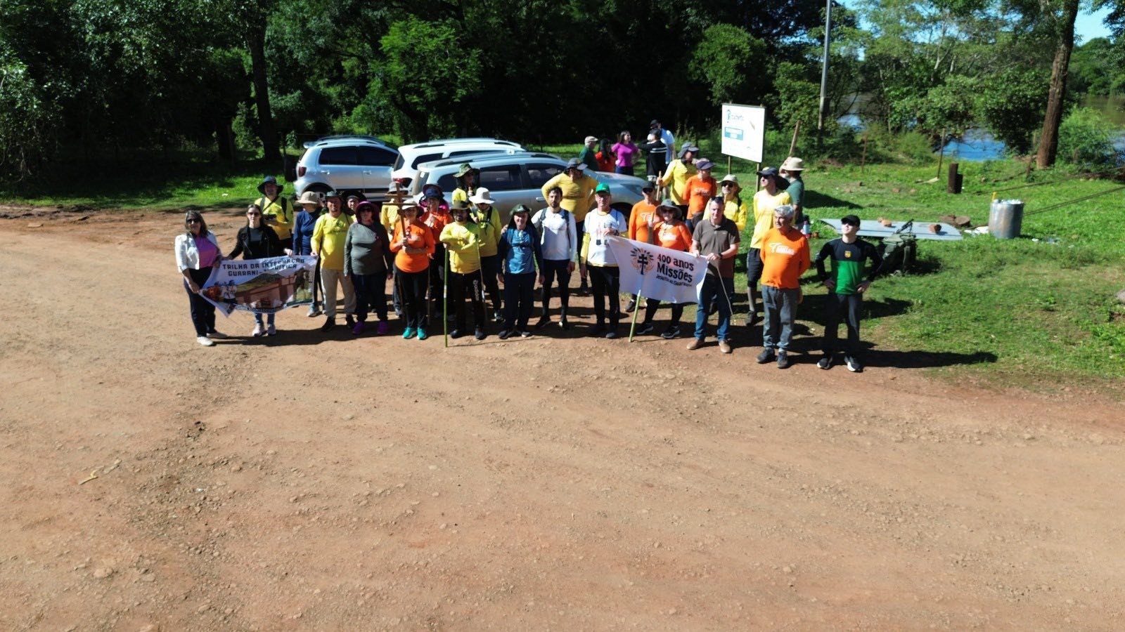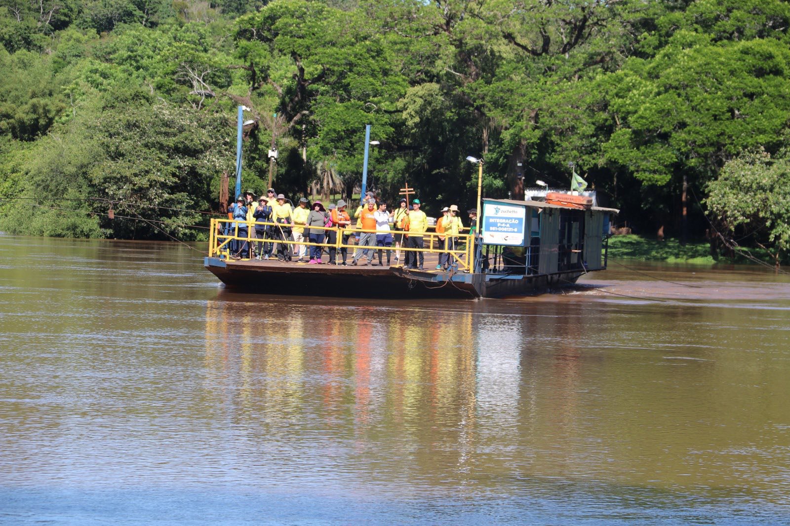 Na manhã desta segunda-feira, o Prefeito Fernando Mattes Machry, acompanhado da Secretária de Educação, Marilene Cruz Both, e da Diretora de Educação, Gicelda Ledur, recepcionaram, na balsa que liga Pirapó a Roque Gonzales, os participantes da 25ª Trilha dos Santos Mártires das Missões.