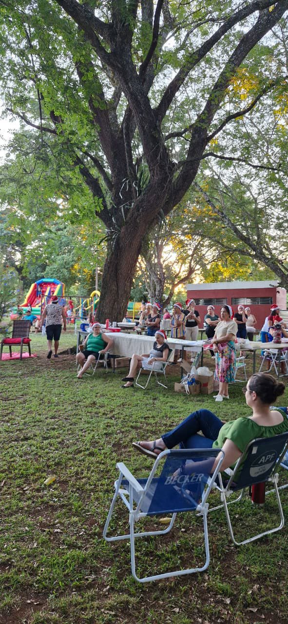 Na sequência, a chegada do Papai Noel trouxe alegria especial às crianças, com a entrega dos tradicionais pacotinhos, encantando famílias e participantes.