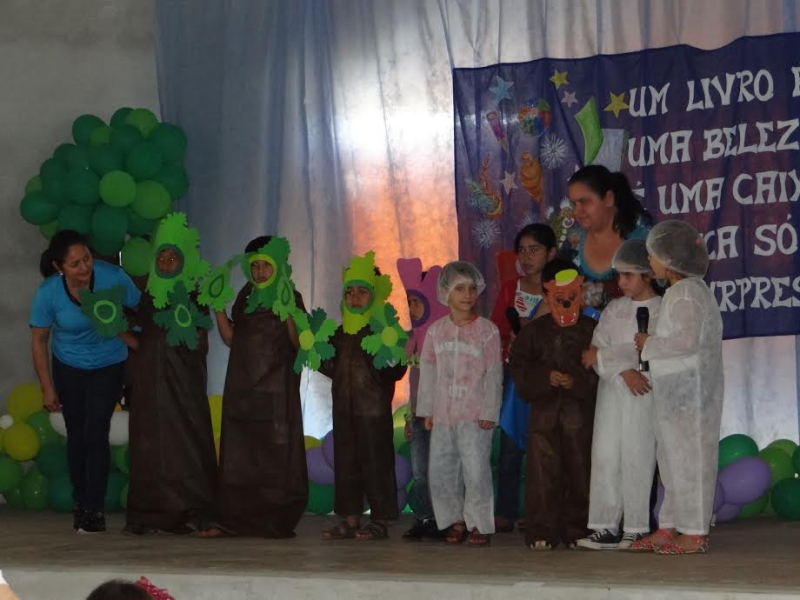 DURANTE AS APRESENTAÇÕES OS ALUNOS ANIMARAM A PLATÉIA, INCORPORANDO PERSONAGENS DAS HISTÓRIAS INFANTIS.