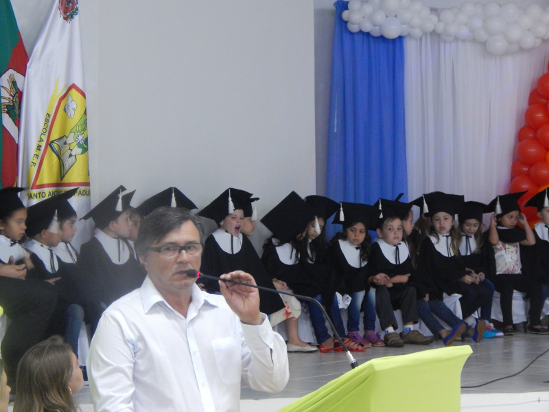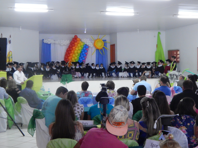Na noite de quinta-feira, junto ao salão de atos da Escola Municipal Santo Antônio de Pádua; educandário que é dirigido pela Professora Neiva Bolfe, reuniu-se toda a comunidade escolar além de familiares e autoridades para acompanhar a formatura de 42 crianças das séries iniciais. Durante o ato, houveram apresentações e juramento, onde era visível a emoção de pais e familiares que participavam, várias autoridades se pronunciaram parabenizando os formandos e familiares, enfim foi uma belíssima formatura.