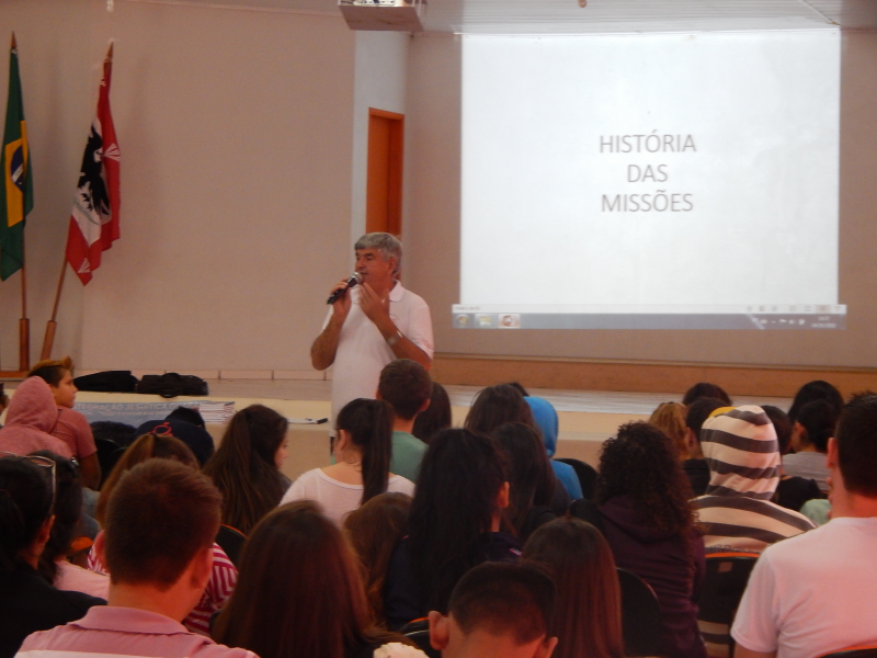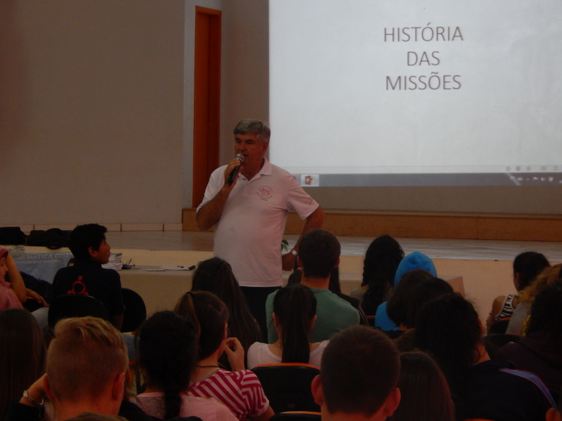 No dia 04 de outubro, no auditório da escola Santo Antônio de Pádua, foi realizada a palestra "História e Turismo nas Missões Jesuítico-Guaranis", para alunos do 6° ao 9° ano e professores do município. O projeto foi desenvolvido pelas Secretarias Municipais de Educação dos municípios missioneiros é idealizado pela AMM, e que tem como palestrante o Professor e Historiador Sérgio Venturini.